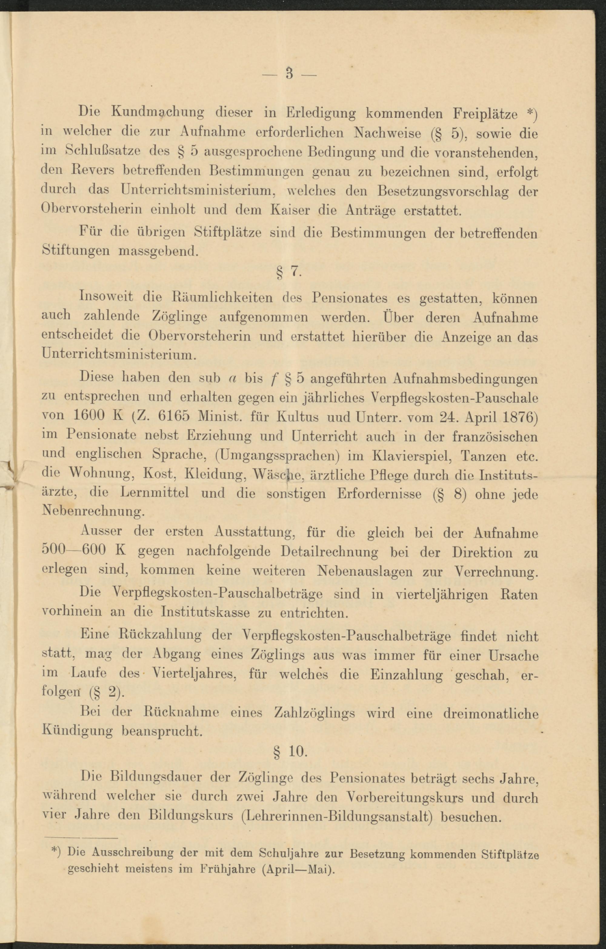 I)i686 linken den 8nk u tÜ8 /d 8 5 anAekükrten Vuknakm8kedinAunA6n enti-preeken und erkalten Ze^en ein )äkrlieko8 Verptl6A8ko8ten-Dau86kale von 1600 X 6165 iVIini8t. kür Xultu8 und Dnterr. voni 24. Vpril 1876) im Denmonate nek8t Xr^iekunZ und Dnterriekt auek in der kran^Ö8i8eken und 6NAli86ken 8praeke, (Dm»anA88praeken) im Xlavierspiel, 4an2en ele. die V/oknunZ, Xo8t, Xlvidun», ^Vä8ejiie, ärirtlieke DtloAS durek die Instituts- ärrite, die Dernmittel und die 80 N 8 tiZen Xrkorderni886 8) okne )sde XekenreeknunA.