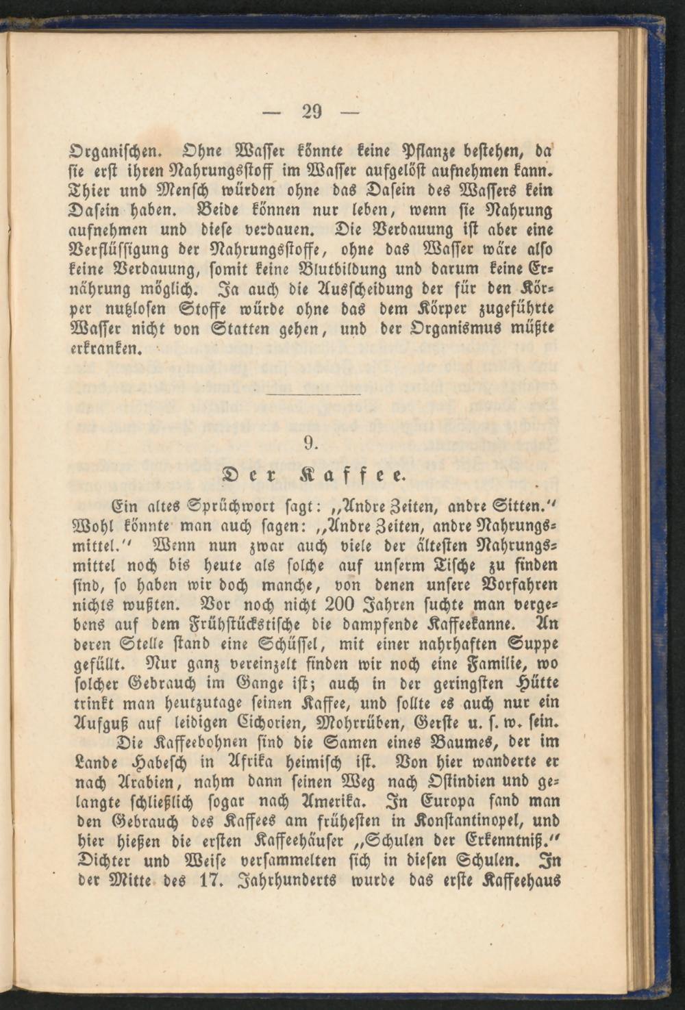 Ein altes Sprüchworl sagt: „Andre Zeiten, andre Sitten." Wohl könnte man auch sagen: „Andre Zeiten, andre Nahrungsmittel." Wenn nun zwar auch viele der ältesten Nahrungsmittel noch bis heute als solche auf unserm Tische zu finden sind, so haben wir doch manche, von denen unsere Vorfahren nichts wußten. Vor noch nicht 200 Jahren suchte man vergebens auf dem Frühstückstische die dampfende Kaffeekanne. An deren Stelle stand eine Schüssel, mit einer nahrhaften Suppe gefüllt. Nur ganz vereinzelt finden wir noch eine Familie, wo solcher Gebrauch im Gange ist; auch in der geringsten Hütte trinkt man heutzutage seinen Kaffee, und sollte es auch nur ein Ausguß auf leidigen Cichorien, Mohrrüben, Gerste u. s. w. sein.