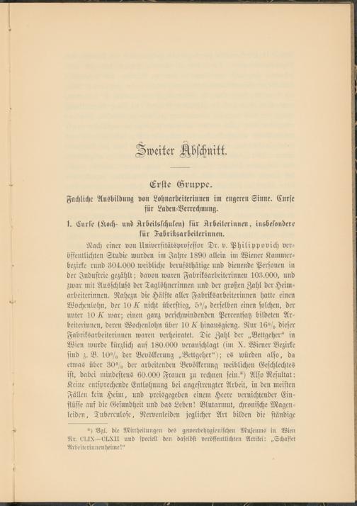 1. Curie (Koch- und Arbeitsschulen) kür Arbeiterinnen, insbesondere für Fubriksurbeiterinnen.