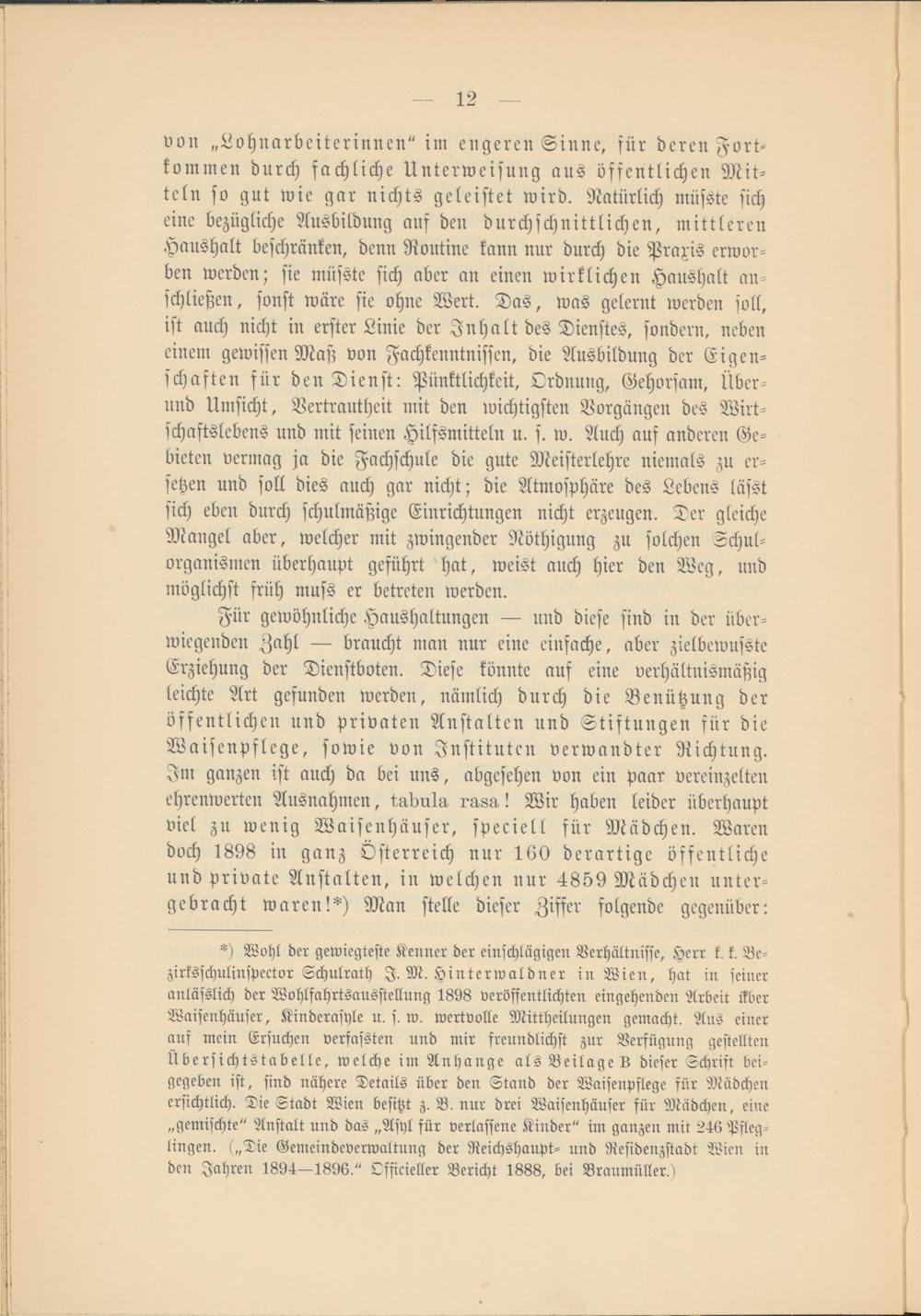 Für gewöhnliche Haushaltungen und diese sind in der über­wiegenden Zahl braucht man nur eine einfache, aber zielbewusste Erziehung der Dienstboten. Diese könnte auf eine verhältnismäßig leichte Art gefunden werden, nämlich durch die Benützung der öffentlichen und privaten Anstalten und Stiftungen für die Wagenpflege, sowie von Instituten verwandter Richtung. Im ganzen ist auch da bei uns, abgesehen von ein paar vereinzelten ehrenwerten Ausnahmen, tadnla na8a! Wir haben leider überhaupt viel zu wenig Waisenhäuser, speciell für Mädchen. Waren doch 1898 in ganz Österreich nur 160 derartige öffentliche und private Anstalten, in welchen nur 4859 Mädchen unter­gebracht waren!*) Man stelle dieser Ziffer folgende gegenüber: