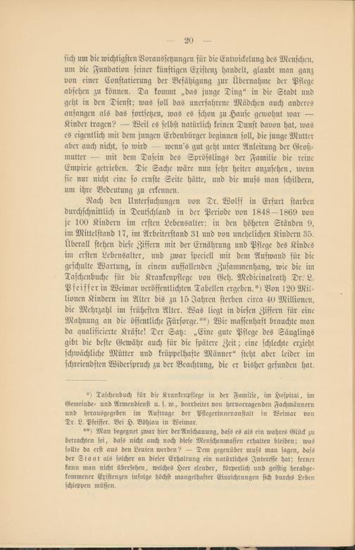 *) Taschenbuch für die Krankenpflege in der Familie, im Hospital, im Gemeinde- und Armendienst u. s. w., bearbeitet von hervorragenden Fachmännern und herausgegeben im Auftrage der Pflegerinnenanstalt in Weimar von Dr. L. Pfeiffer. Bei H. Böhlau in Weimar.