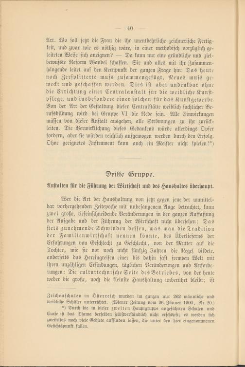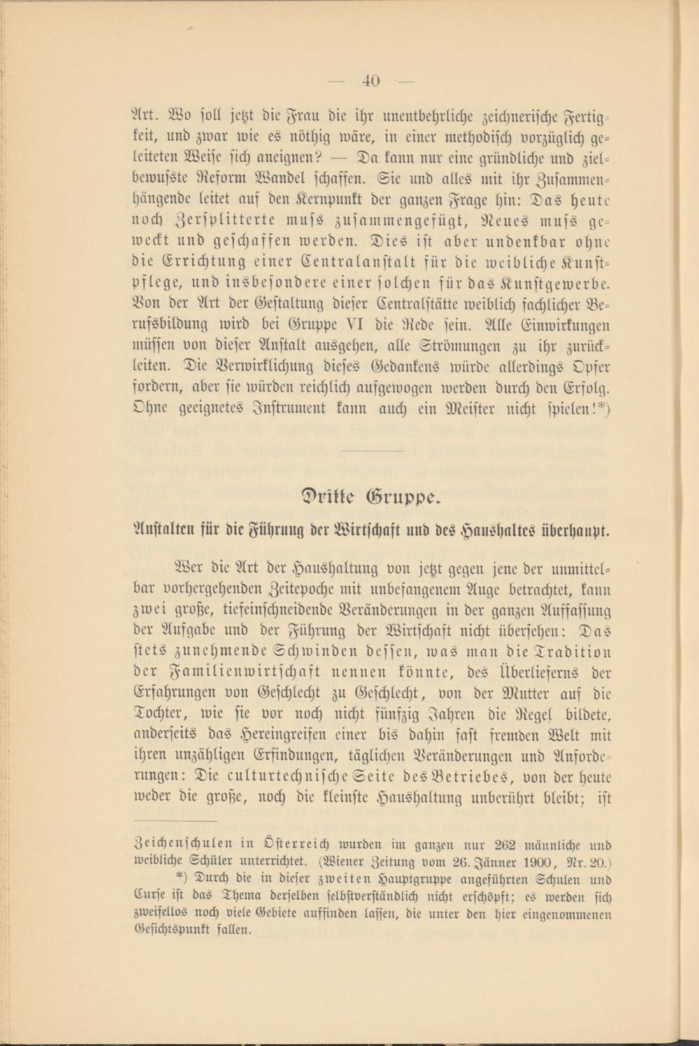 Zeichen schulen in Österreich wurden im ganzen nur 262 männliche und weibliche Schüler unterrichtet. (Wiener Zeitung vom 26. Jänner 1900, Nr. 20.)