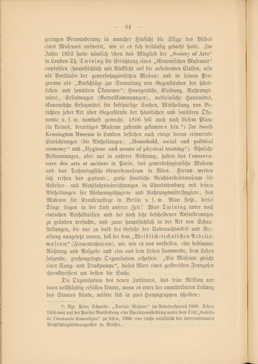 *) Vgl. Peter Schmidt: „Sociale Museen" im Arbeiterfreund t899. Schon 1855 war auf der Parifer Ausstellung eine Specialausstellung unter dein Titel „dalörw tlo 1'seonoiE äomsstigue" zu sehen, 1856 eine solche anlässlich des internationalen. Wohlthätigkeitscongresses in Brüssel.