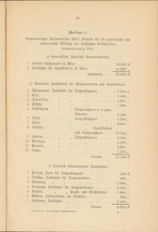 Gegenwärtiger Aufwand des öftere» Staates für die gewerbliche und rowinerciellc Kldnng des weiblichen Geschlechtes. (Äaatsvoran schlag 1W0.)