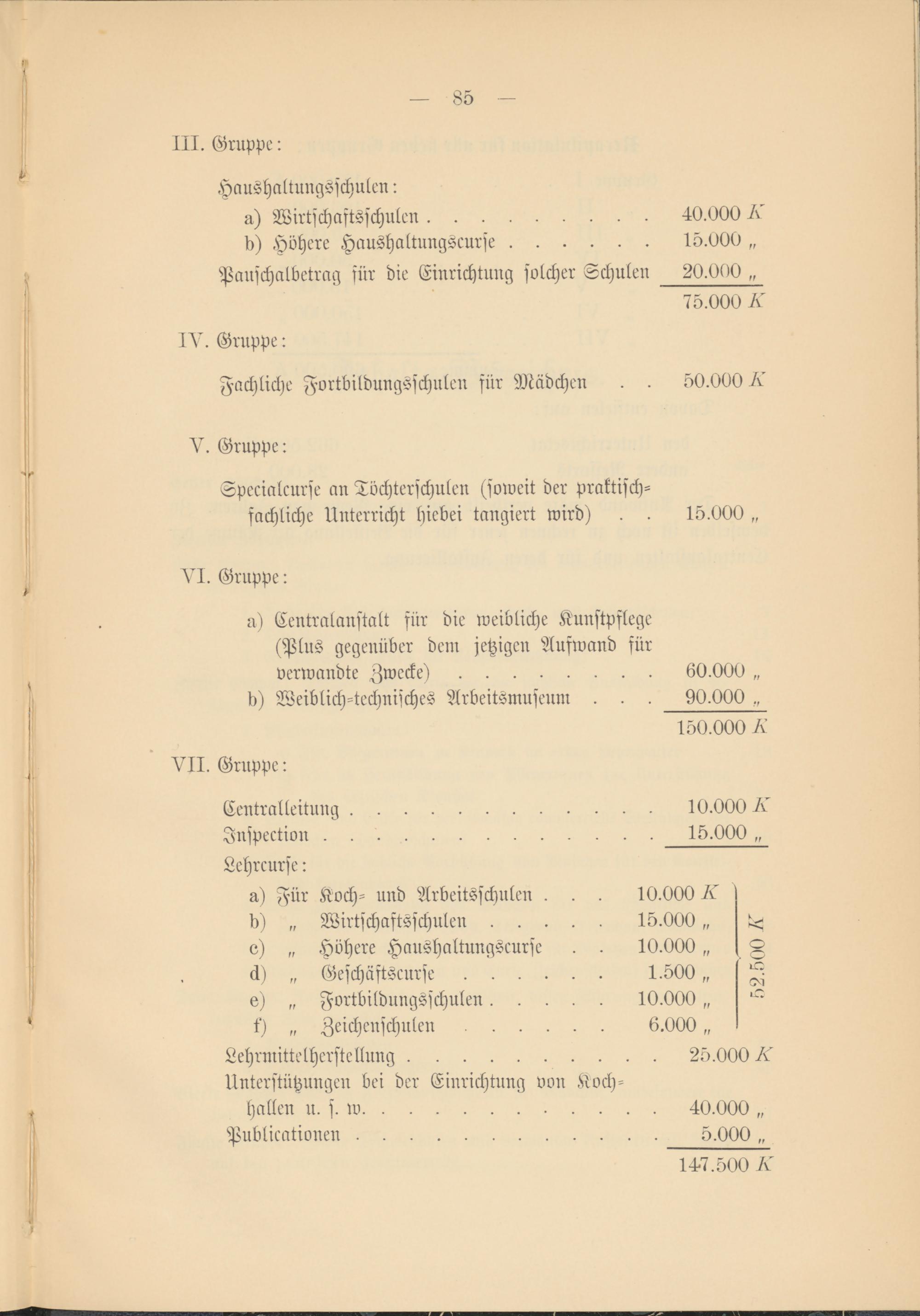 Specialcurse an Töchterschulen (soweit der praktisch­sachliche Unterricht Hiebei tangiert wird) . . 15.000