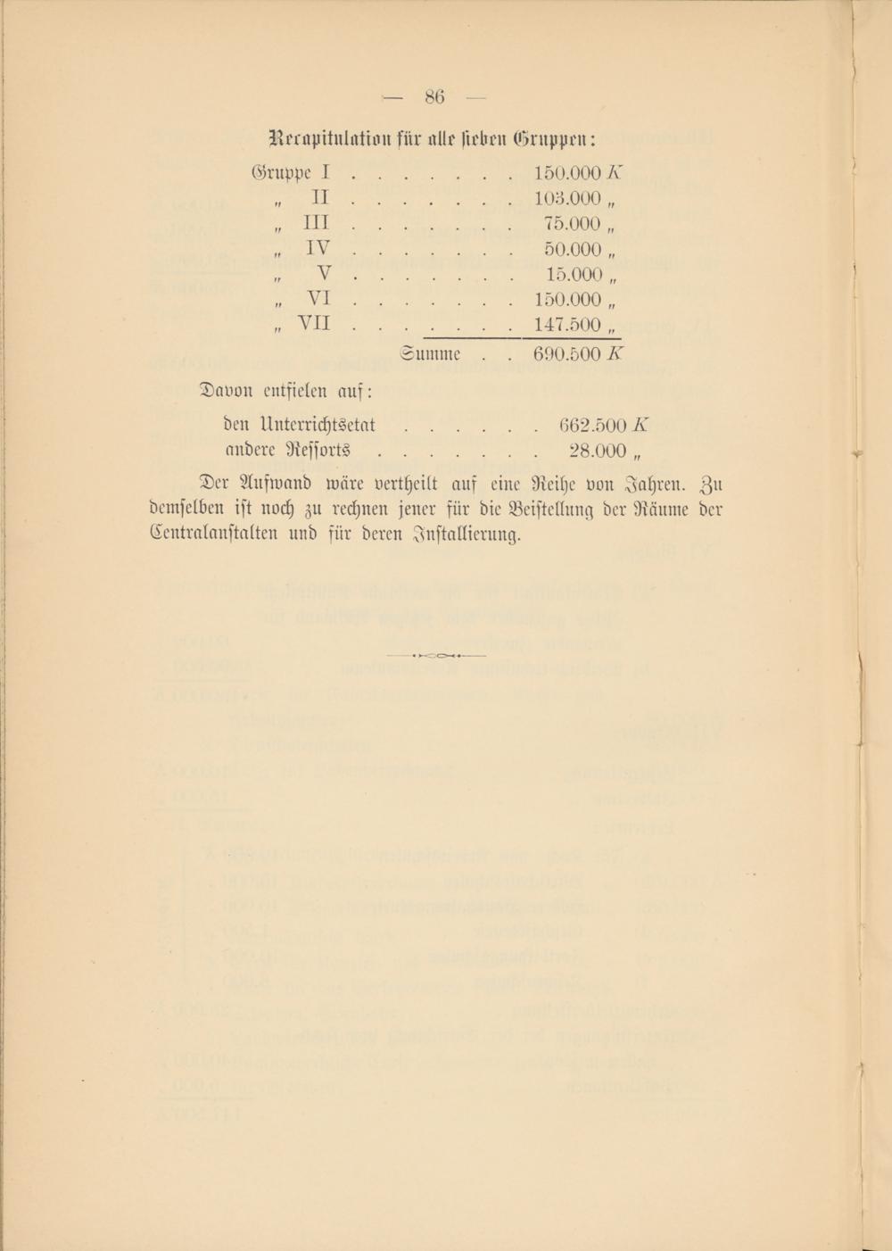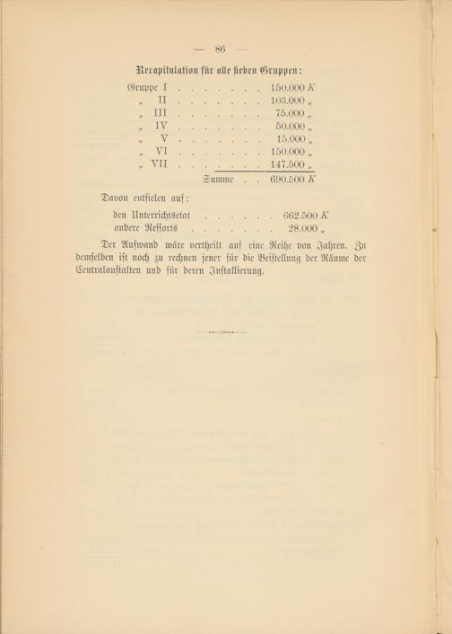 Der Aufwand wäre vertheilt auf eine Reihe von Jahren. Zu demselben ist noch zu rechnen jener für die Beistellung der Räume der Centralanstalten und für deren Installierung.