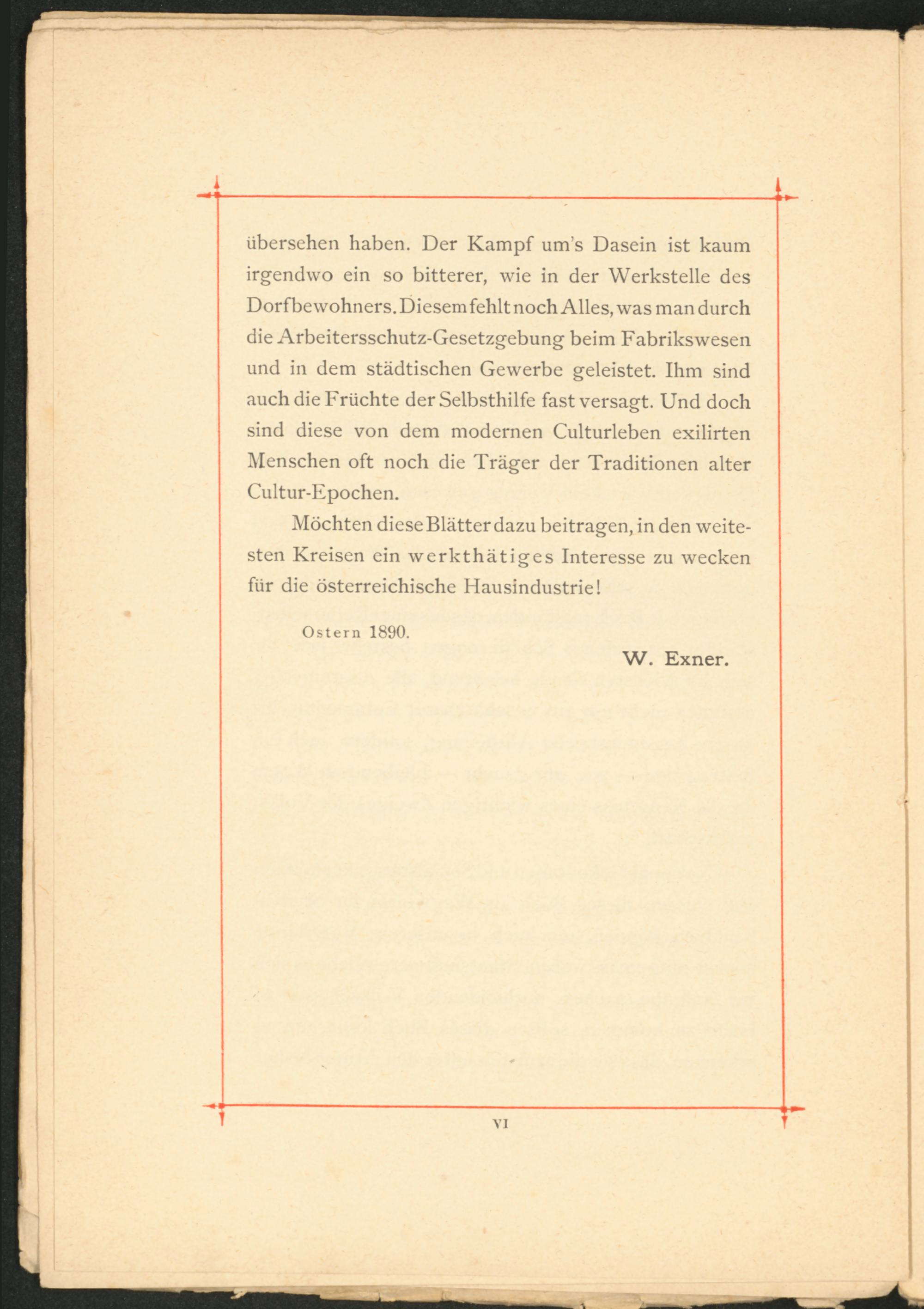 Möchten diese Blätter dazu beitragen, in den weitesten Kreisen ein werkthätiges Interesse zu wecken für die österreichische Hausindustrie!