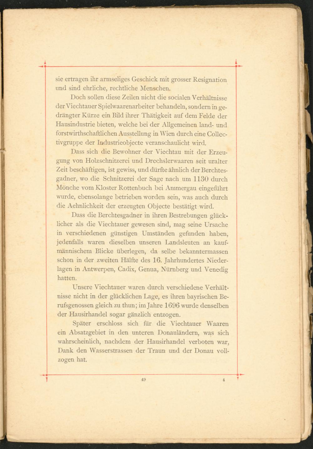 Doch sollen diese Zeilen nicht die socialen Verhältnisse der Viechtauer Spiehvaarenarbeiter behandeln, sondern in gedrängter Kürze ein Bild ihrer Thätigkeit auf dem Felde der Hausindustrie bieten, welche bei der Allgemeinen land- und forstwirthschaftlichen Ausstellung in Wien durch eine Collec- tivgruppe der Industrieobjecte veranschaulicht wird.
