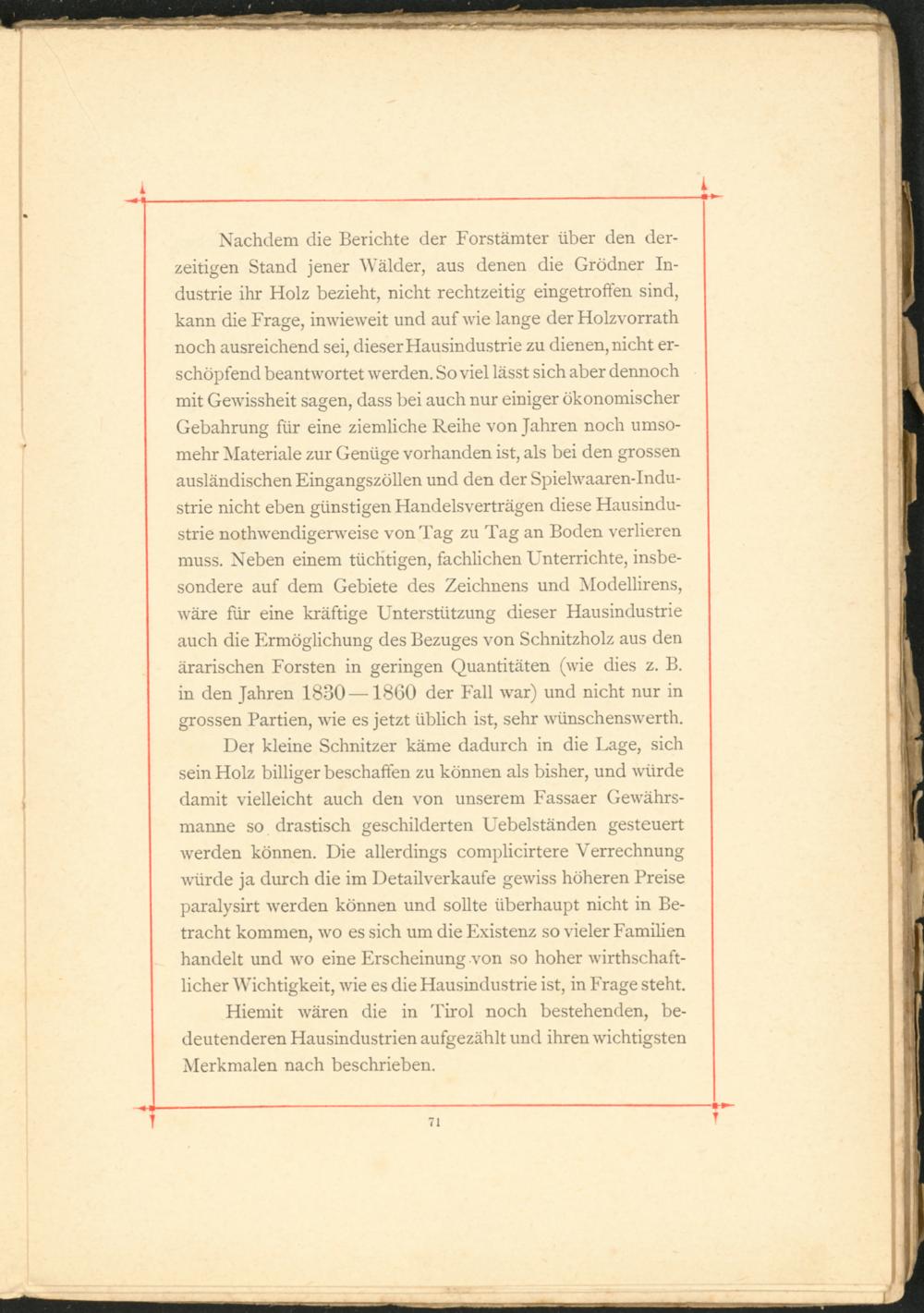 Hiemit wären die in Tirol noch bestehenden, bedeutenderen Hausindustrien aufgezählt und ihren wichtigsten Merkmalen nach beschrieben.