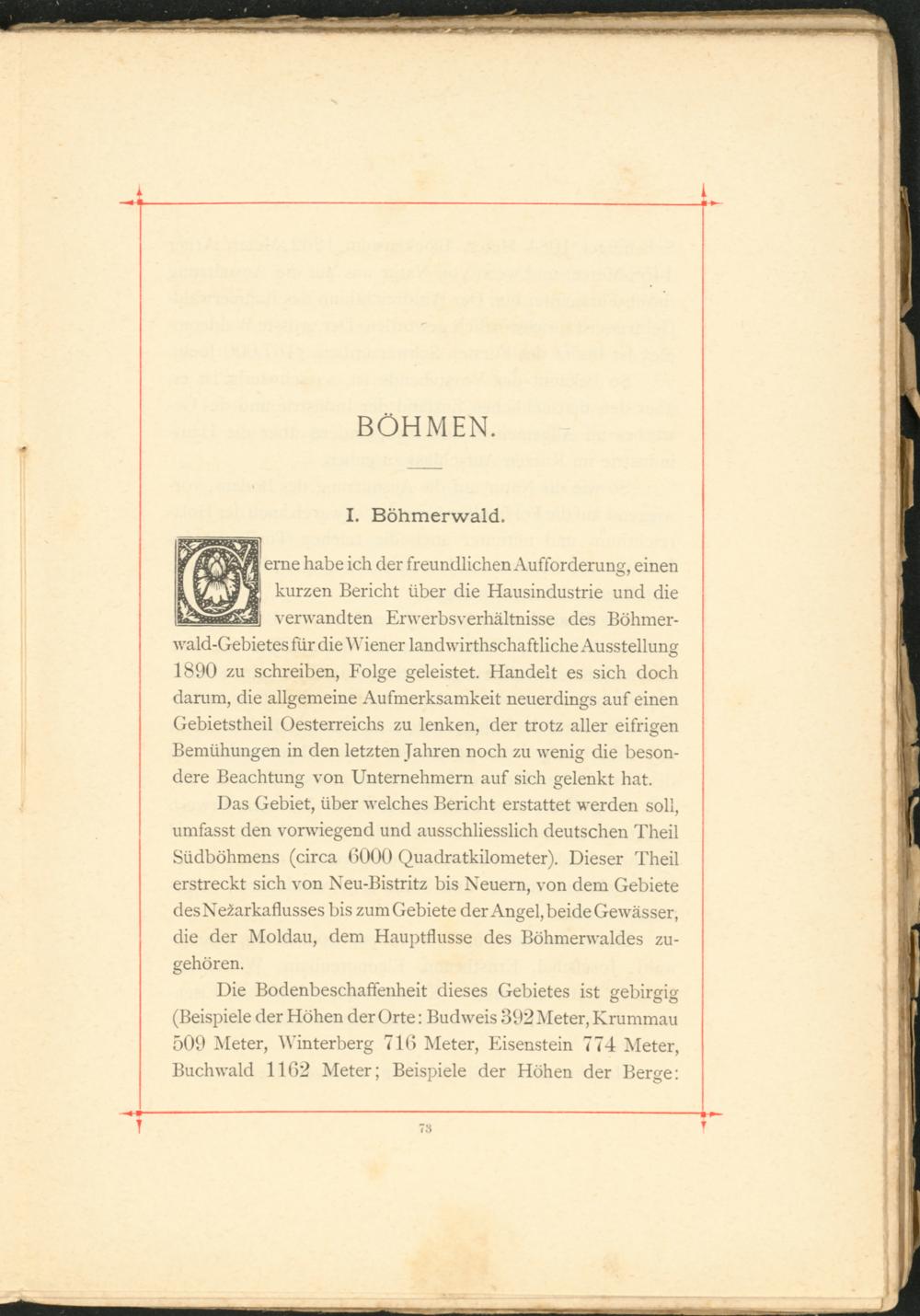 erne habe ich der freundlichen Aufforderung, einen kurzen Bericht über die Hausindustrie und die verwandten Erwerbsverhältnisse des Böhmerwald-Gebietes für die Wiener landwirthschaftliche Ausstellung 1890 zu schreiben, Folge geleistet. Handelt es sich doch darum, die allgemeine Aufmerksamkeit neuerdings auf einen Gebietstheil Oesterreichs zu lenken, der trotz aller eifrigen Bemühungen in den letzten Jahren noch zu wenig die besondere Beachtung von Unternehmern auf sich gelenkt hat.