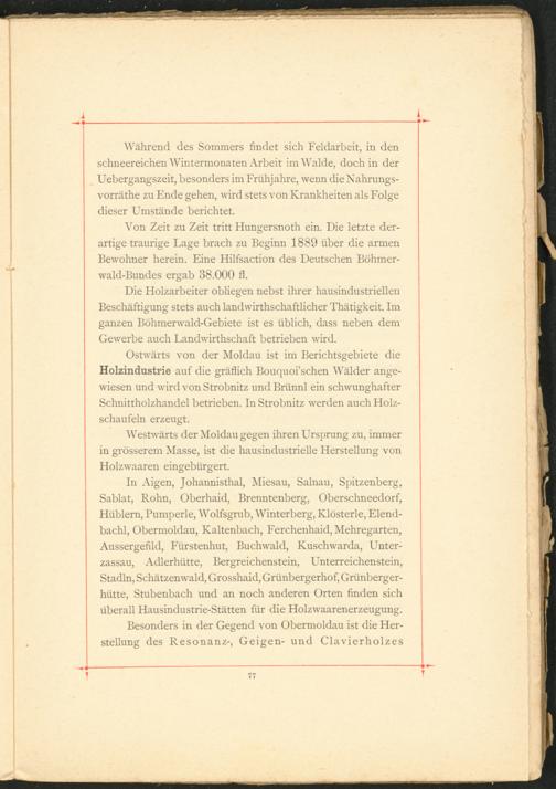 Westwärts der Moldau gegen ihren Ursprung zu, immer in grösserem Masse, ist die hausindustrielle Herstellung von Holzwaaren eingebürgert.