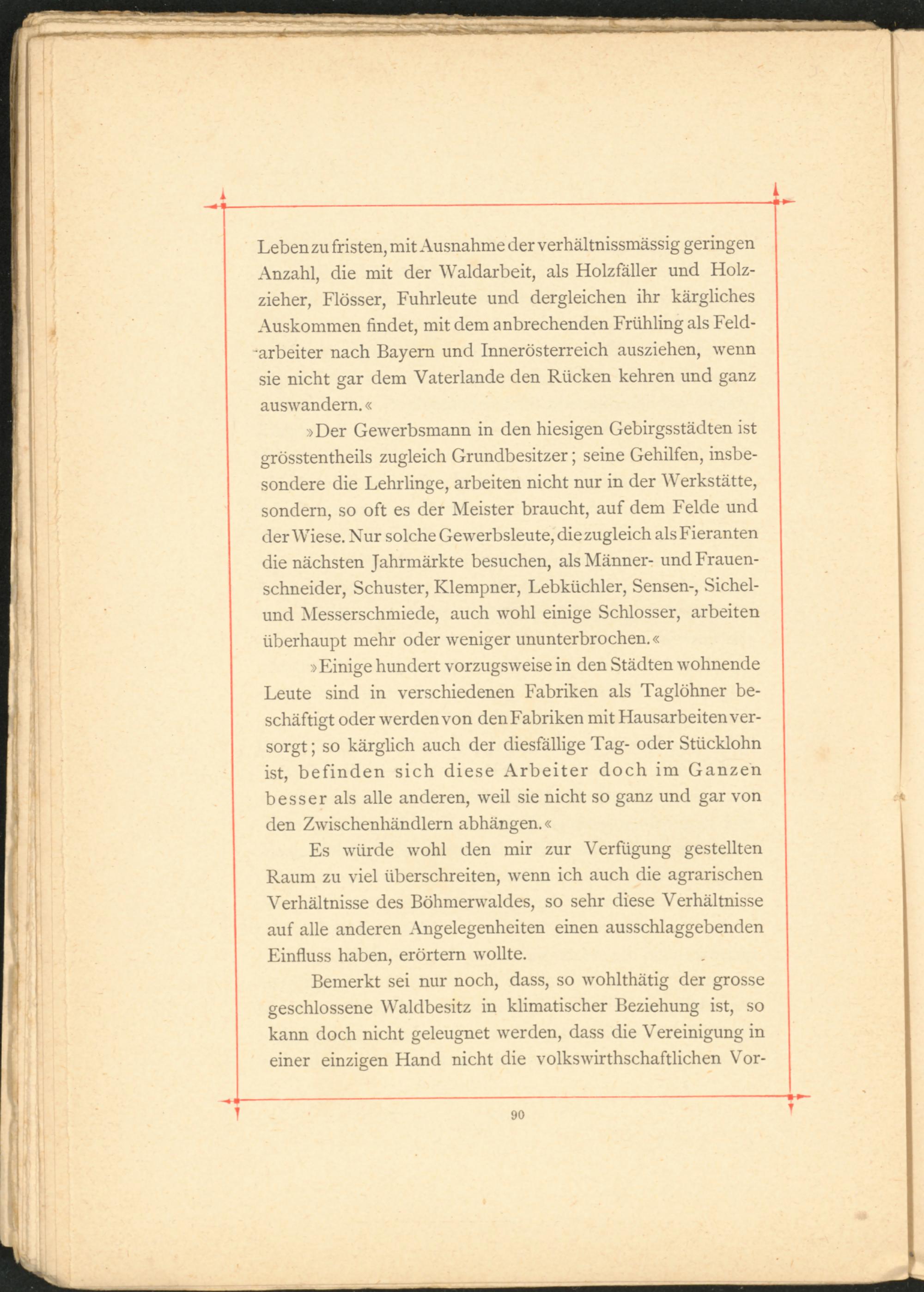 Es würde wohl den mir zur Verfügung gestellten Raum zu viel überschreiten, wenn ich auch die agrarischen Verhältnisse des Böhmerwaldes, so sehr diese Verhältnisse auf alle anderen Angelegenheiten einen ausschlaggebenden Einfluss haben, erörtern wollte.