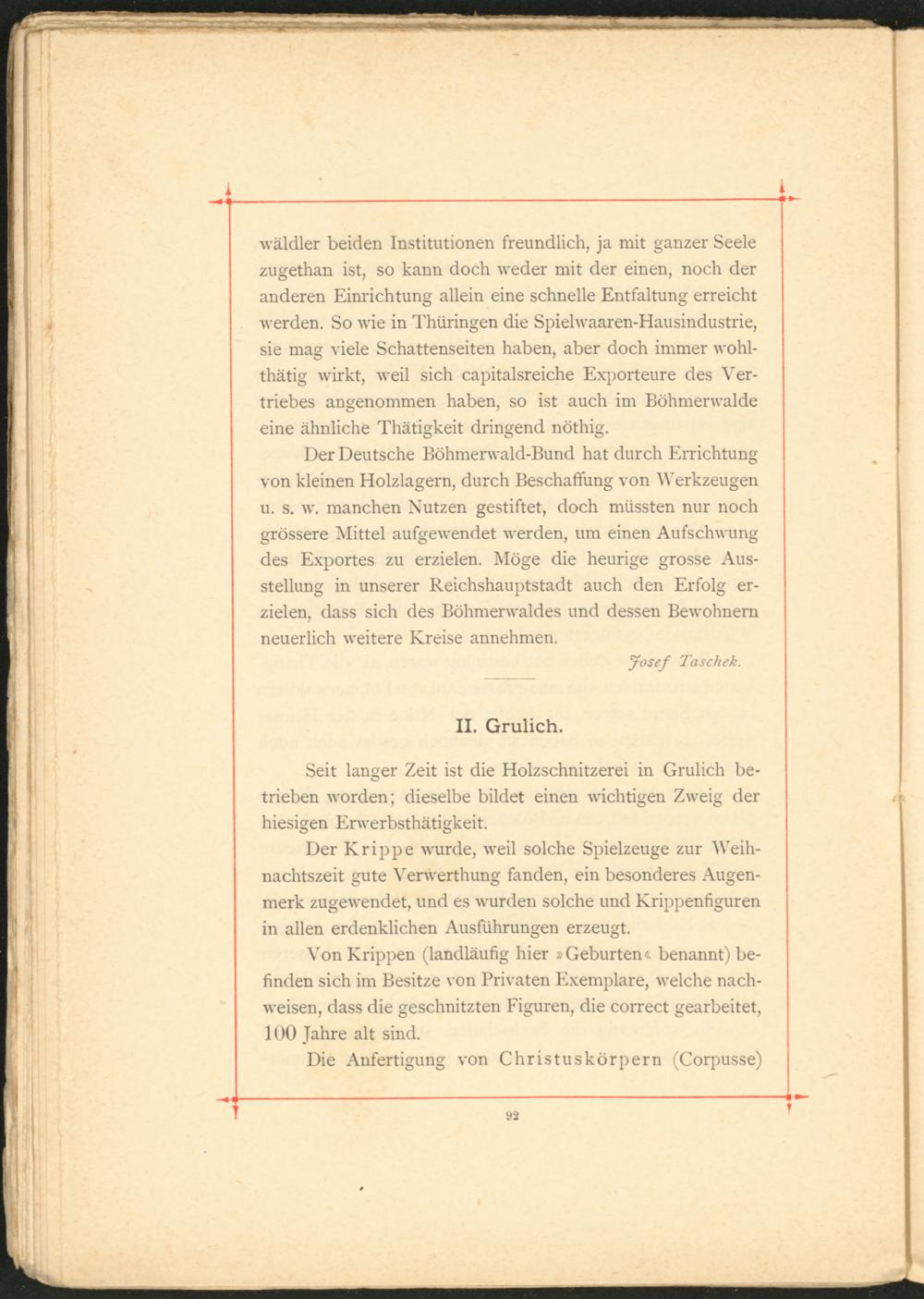 Von Krippen (landläufig hier »Geburten« benannt) befinden sich im Besitze von Privaten Exemplare, welche nach- weisen, dass die geschnitzten Figuren, die correct gearbeitet, 1()0 Jahre alt sind.