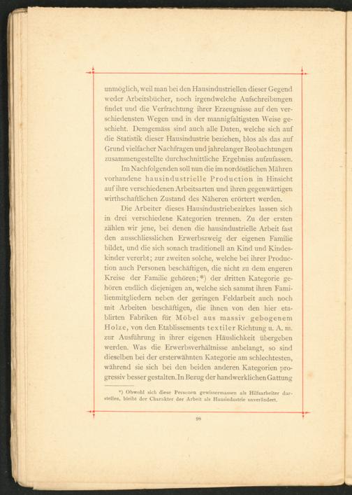 Im Nachfolgenden soll nun die im nordöstlichen Mähren vorhandene hausindustrielle Production in Hinsicht auf ihre verschiedenen Arbeitsarten und ihren gegenwärtigen wirthschaftlichen Zustand des Näheren erörtert werden.