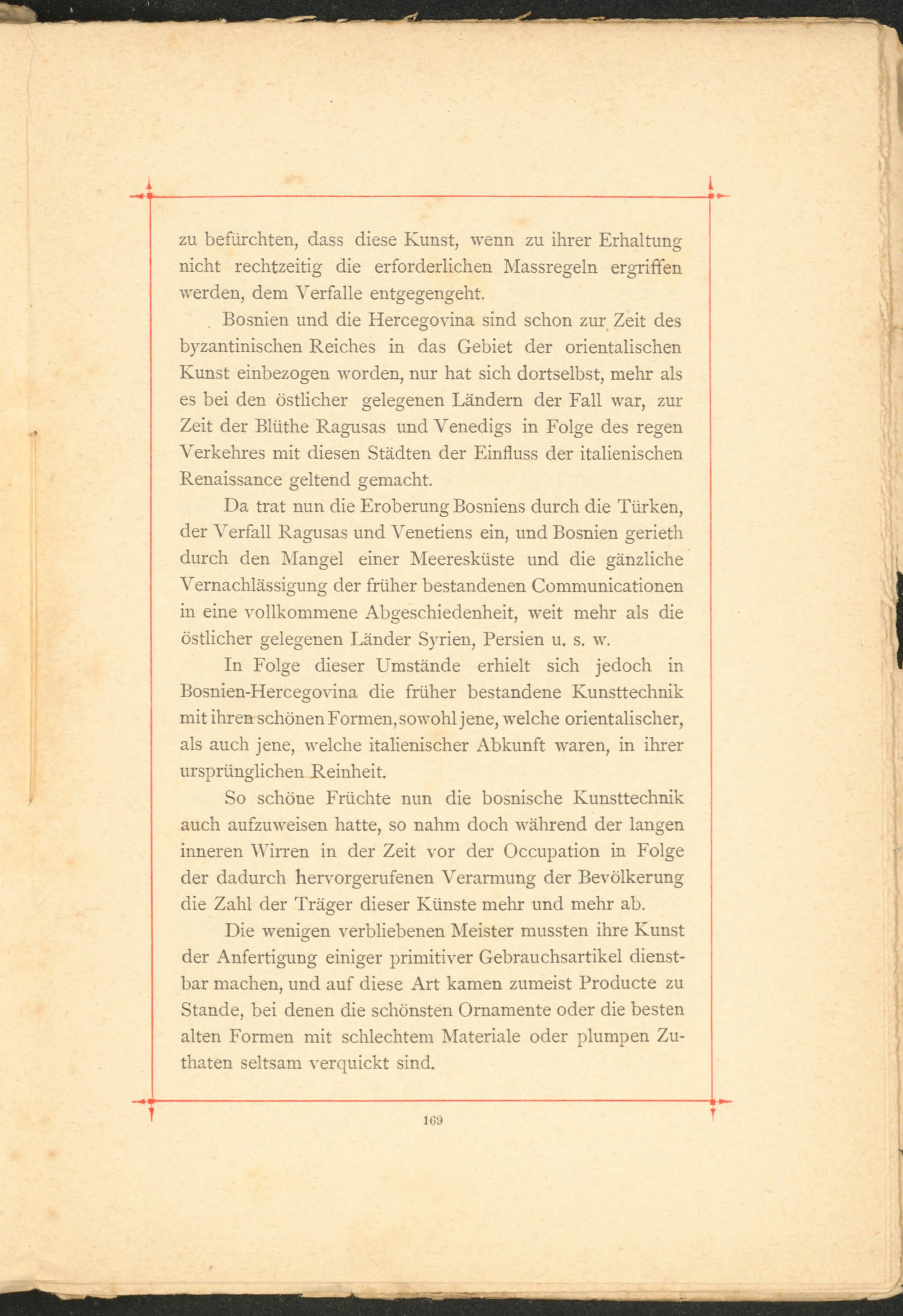In Folge dieser Umstände erhielt sich jedoch in Bosnien-HercegOA’ina die früher bestandene Kunsttechnik mit ihren schönen Formen, soAA’ohl jene, AA r elche orientalischer, als auch jene, aa' eiche italienischer Abkunft AA-aren, in ihrer ursprünglichen Reinheit.