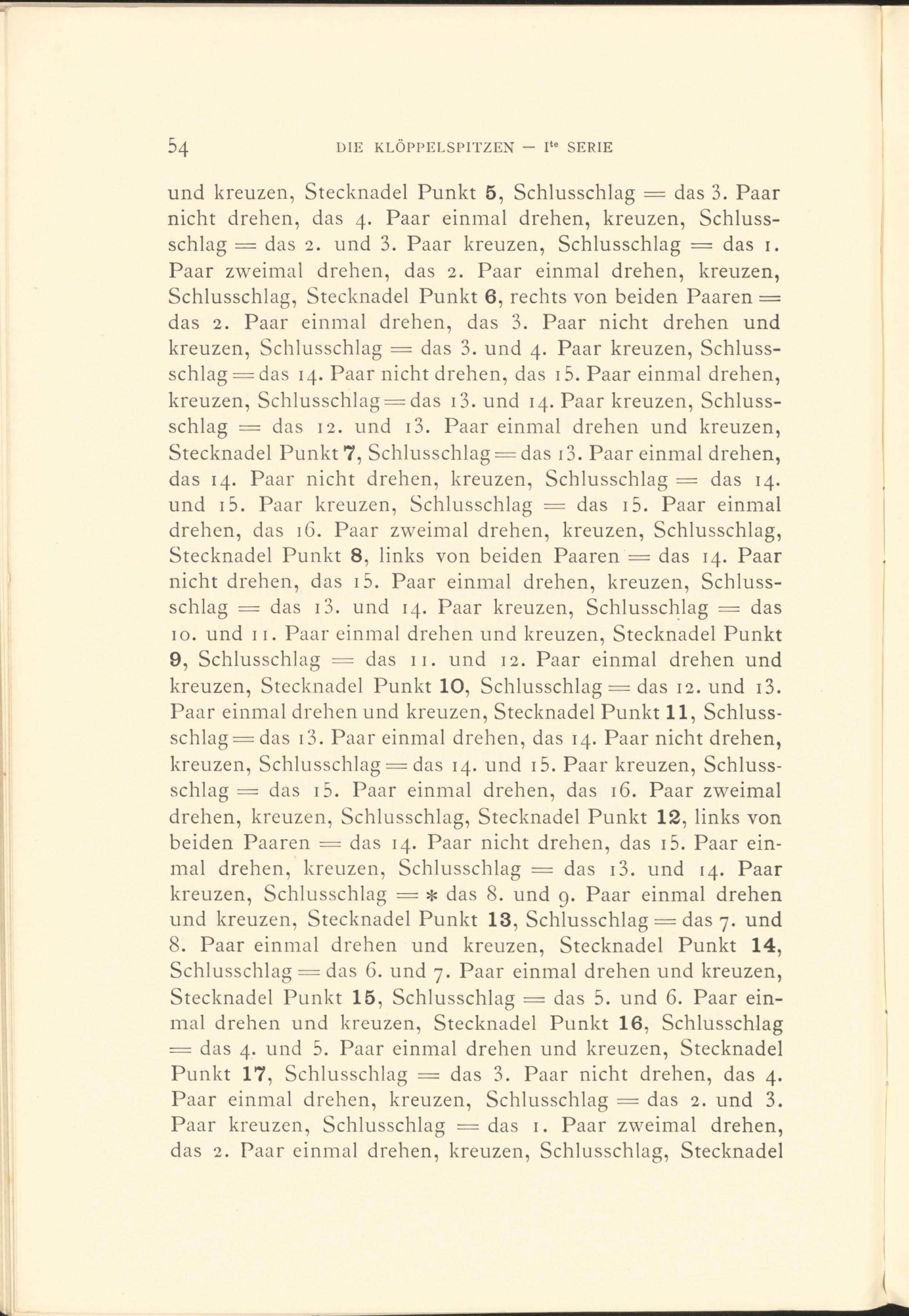 und kreuzen, Stecknadel Punkt 5, Schlusschlag = das 3 . Paar nicht drehen, das 4. Paar einmal drehen, kreuzen, Schlussschlag = das 2. und 3 . Paar kreuzen, Schlusschlag = das 1. Paar zweimal drehen, das 2. Paar einmal drehen, kreuzen, Schlusschlag, Stecknadel Punkt 6, rechts von beiden Paaren = das 2. Paar einmal drehen, das 3 . Paar nicht drehen und kreuzen, Schlusschlag = das 3 . und 4. Paar kreuzen, Schlussschlag = das 14. Paar nicht drehen, das i 5 . Paar einmal drehen, kreuzen, Schlusschlag = das i 3 . und 14. Paar kreuzen, Schlussschlag = das 12. und i 3 . Paar einmal drehen und kreuzen, Stecknadel Punkt 7, Schlusschlag = das i 3 . Paar einmal drehen, das 14. Paar nicht drehen, kreuzen, Schlusschlag = das 14. und i 5 . Paar kreuzen, Schlusschlag = das i 5 . Paar einmal drehen, das 16. Paar zweimal drehen, kreuzen, Schlusschlag, Stecknadel Punkt 8, links von beiden Paaren = das 14. Paar nicht drehen, das i 5 . Paar einmal drehen, kreuzen, Schlussschlag = das i 3 . und 14. Paar kreuzen, Schlusschlag = das 10. und 11. Paar einmal drehen und kreuzen, Stecknadel Punkt 9, Schlusschlag = das 11. und 12. Paar einmal drehen und kreuzen, Stecknadel Punkt 10, Schlusschlag = das 12. und i 3 . Paar einmal drehen und kreuzen, Stecknadel Punkt 11, Schluss- schlag = das i 3 . Paar einmal drehen, das 14. Paar nicht drehen, kreuzen, Schlusschlag = das 14. und i 5 . Paar kreuzen, Schlussschlag = das i 5 . Paar einmal drehen, das 16. Paar zweimal drehen, kreuzen, Schlusschlag, Stecknadel Punkt 12, links von beiden Paaren = das 14. Paar nicht drehen, das i 5 . Paar einmal drehen, kreuzen, Schlusschlag = das i 3 . und 14. Paar kreuzen, Schlusschlag = * das 8. und 9. Paar einmal drehen und kreuzen, Stecknadel Punkt 13, Schlusschlag = das 7. und 8. Paar einmal drehen und kreuzen, Stecknadel Punkt 14, Schlusschlag = das 6. und 7. Paar einmal drehen und kreuzen, Stecknadel Punkt 15, Schlusschlag = das 5 . und 6. Paar einmal drehen und kreuzen, Stecknadel Punkt 16, Schlusschlag = das 4. und 5 . Paar einmal drehen und kreuzen, Stecknadel Punkt 17, Schlusschlag == das 3 . Paar nicht drehen, das 4. Paar einmal drehen, kreuzen, Schlusschlag = das 2. und 3 . Paar kreuzen, Schlusschlag = das 1. Paar zweimal drehen, das 2. Paar einmal drehen, kreuzen, Schlusschlag, Stecknadel
