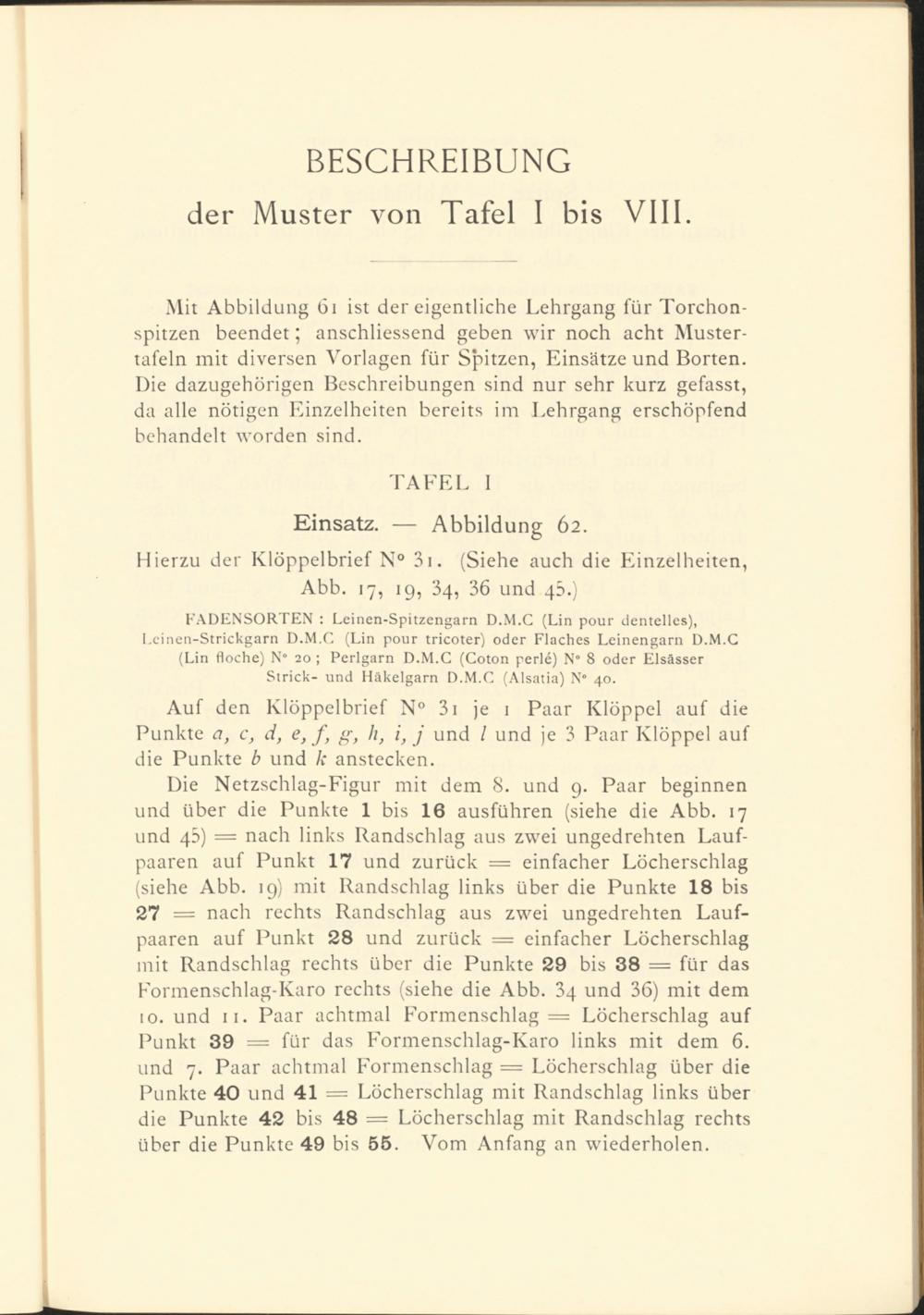 Hierzu der Klöppelbrief N° 3 i. (Siehe auch die Einzelheiten, Abb. 17, 19, 34, 36 und 45.}