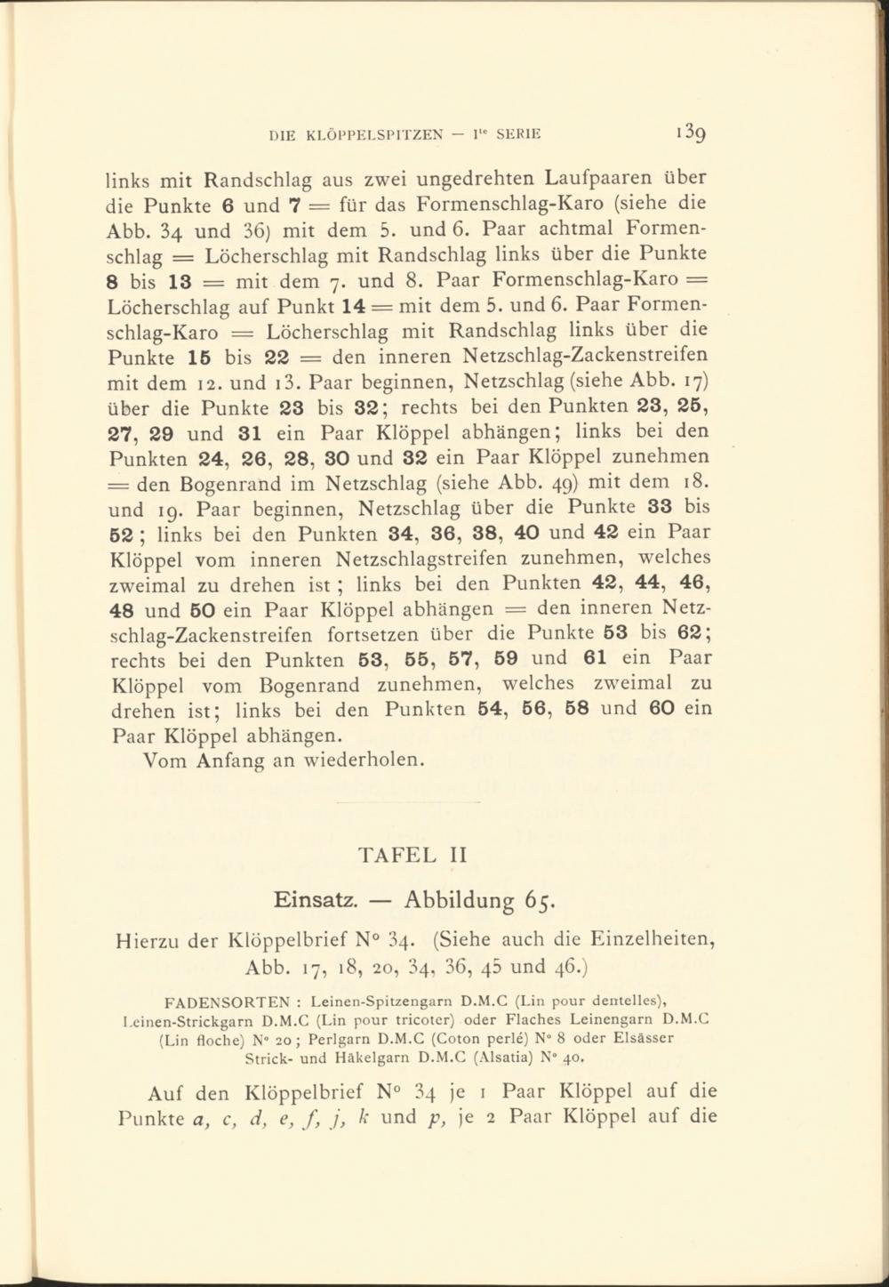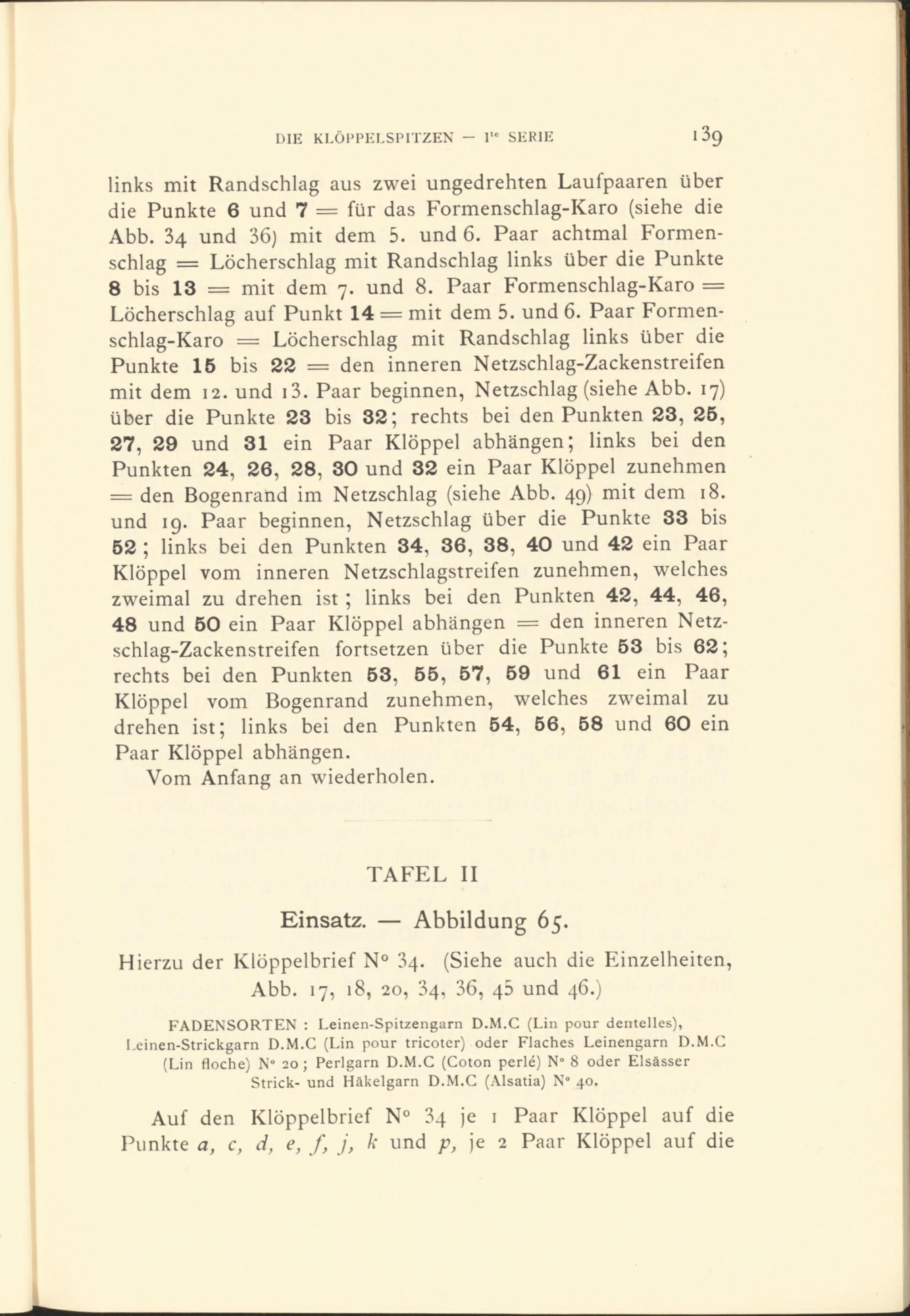 Hierzu der Klöppelbrief N° 34. (Siehe auch die Einzelheiten, Abb. 17, 18, 20, 34, 36, 45 und 46.)