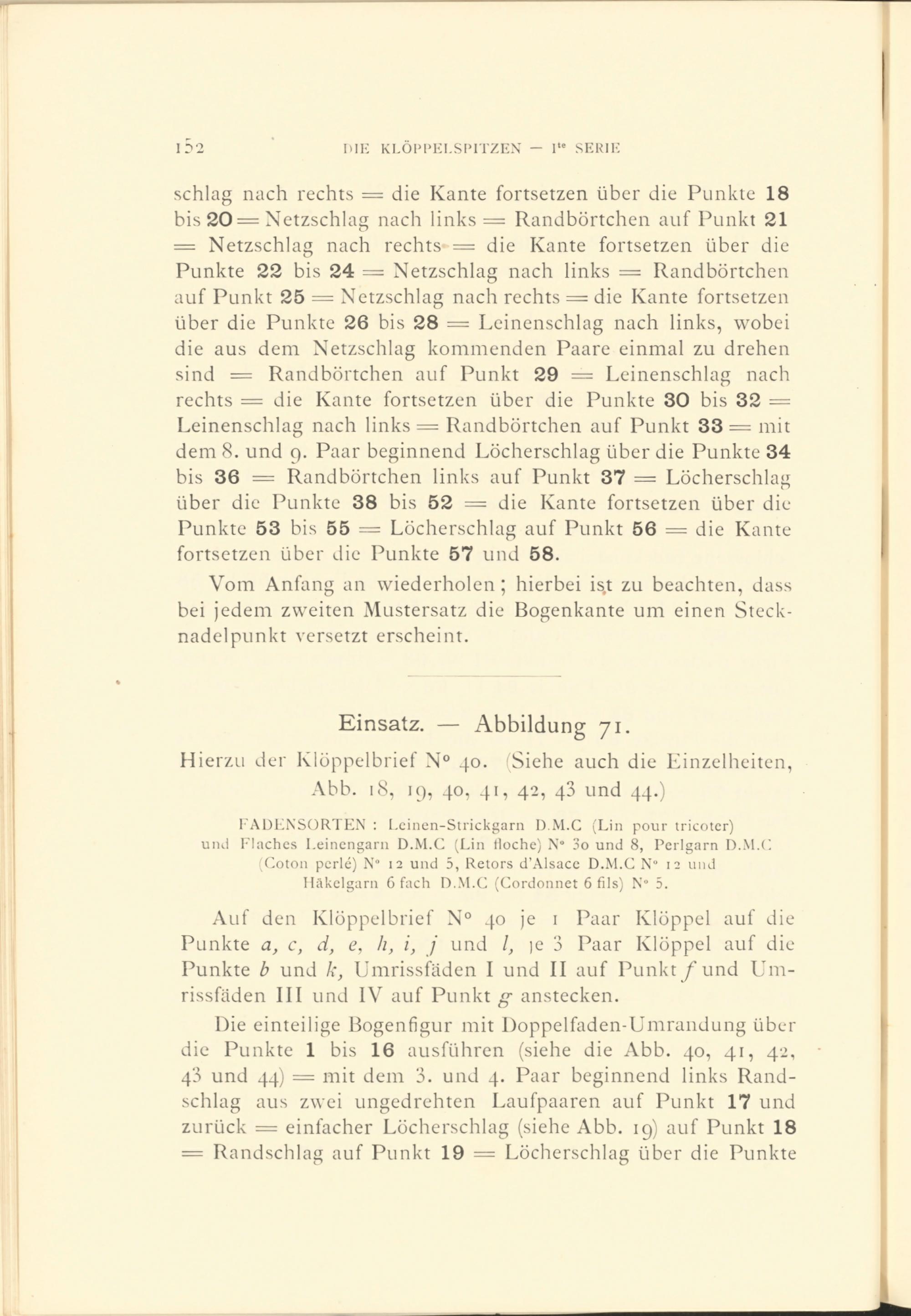 Hierzu der Klöppelbrief N° 40 . (Siehe auch die Einzelheiten, Abb. 18 , 19 , 40 , 41 , 42 , 4 a und 44 .)