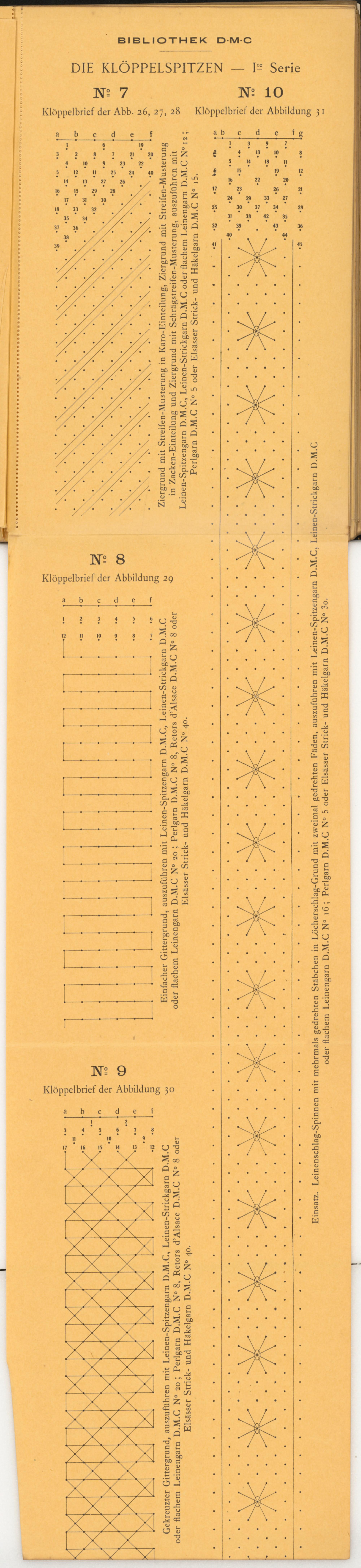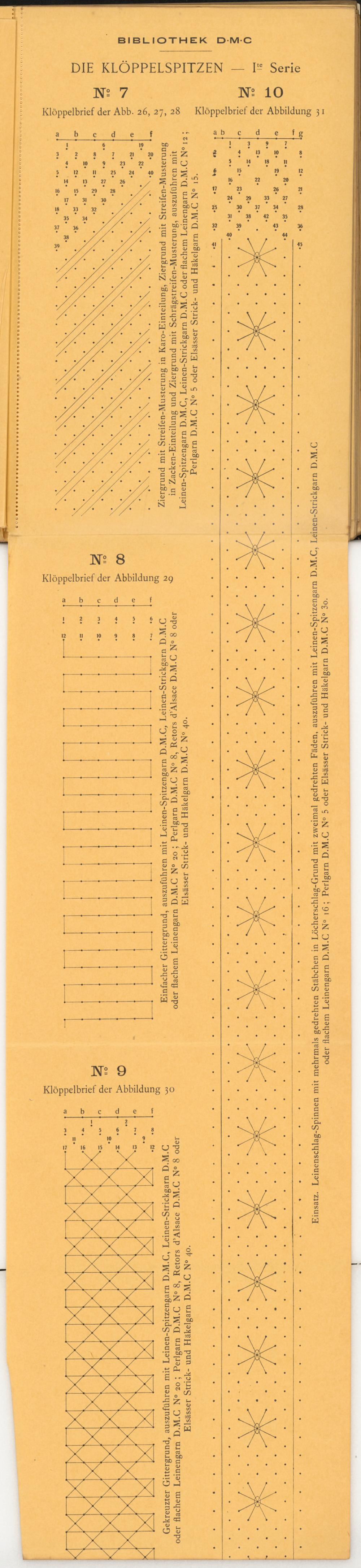 oder flachem Leinengarn D.M.C N° 16 ; Perlgarn D.M.C N° 5 oder Elsässer Strick- und Häkelgarn D.M.C N° 3o.