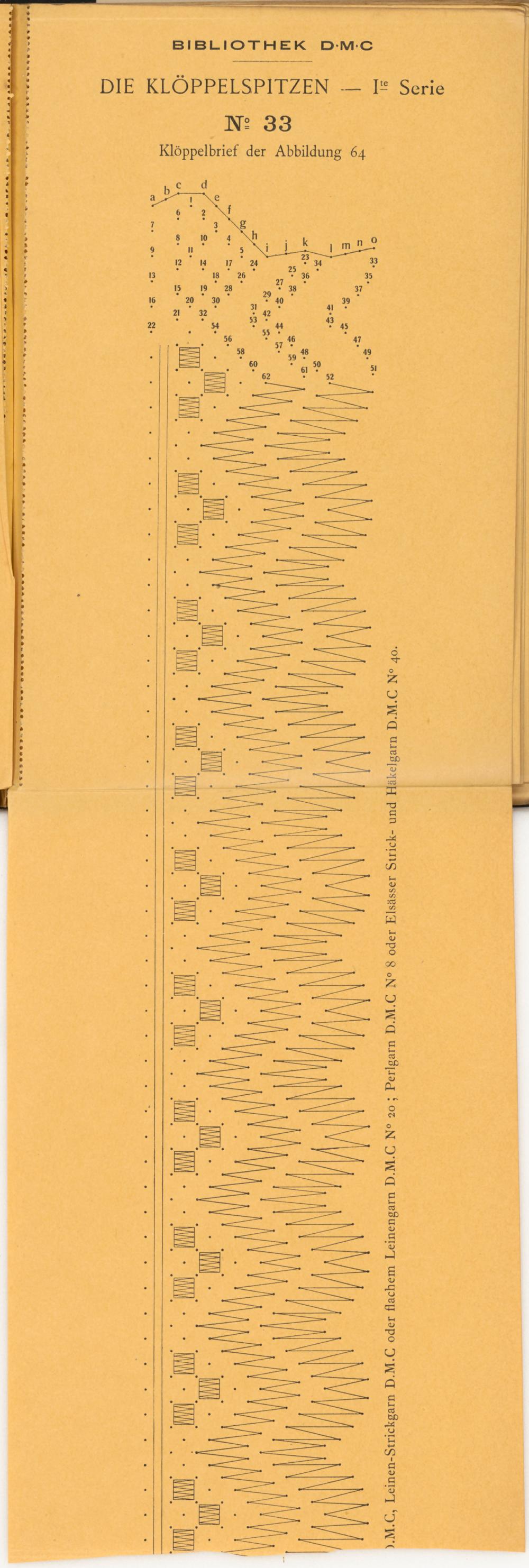 Verzeichnis der Fadenstärken und Nummern der Produkte in Baumwolle, Marke D.M.C