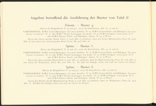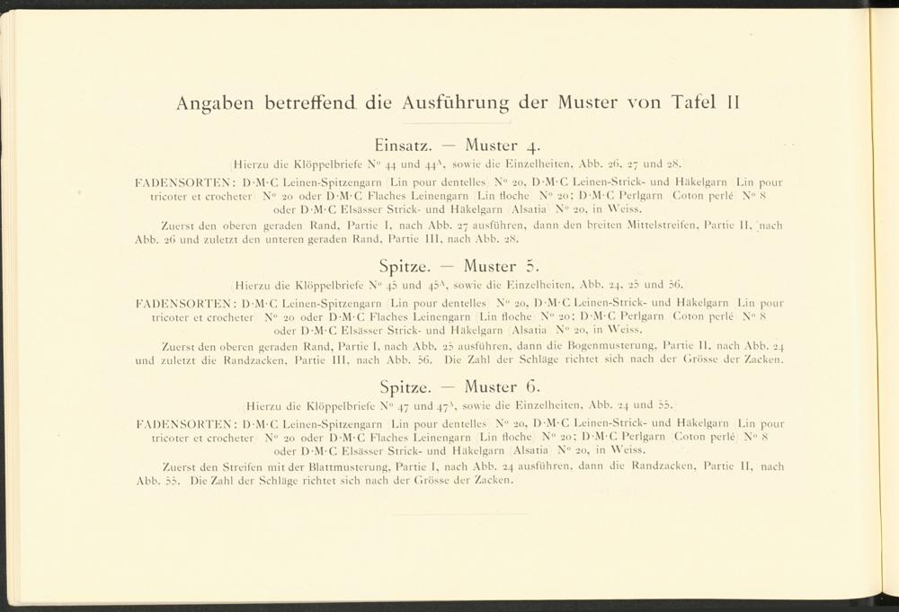KADENSORTEN: D-M-C Leinen-Spitzengarn Lin pour dentelles N° 20, D-AI-C Leinen-Strick- und Häkelgarn Lin pour tricoter et crocheter N° 20 oder D-M-C Flaches Leinengarn Lin tfoche N° 20; D-M-C Perlgarn Coton perle X" X