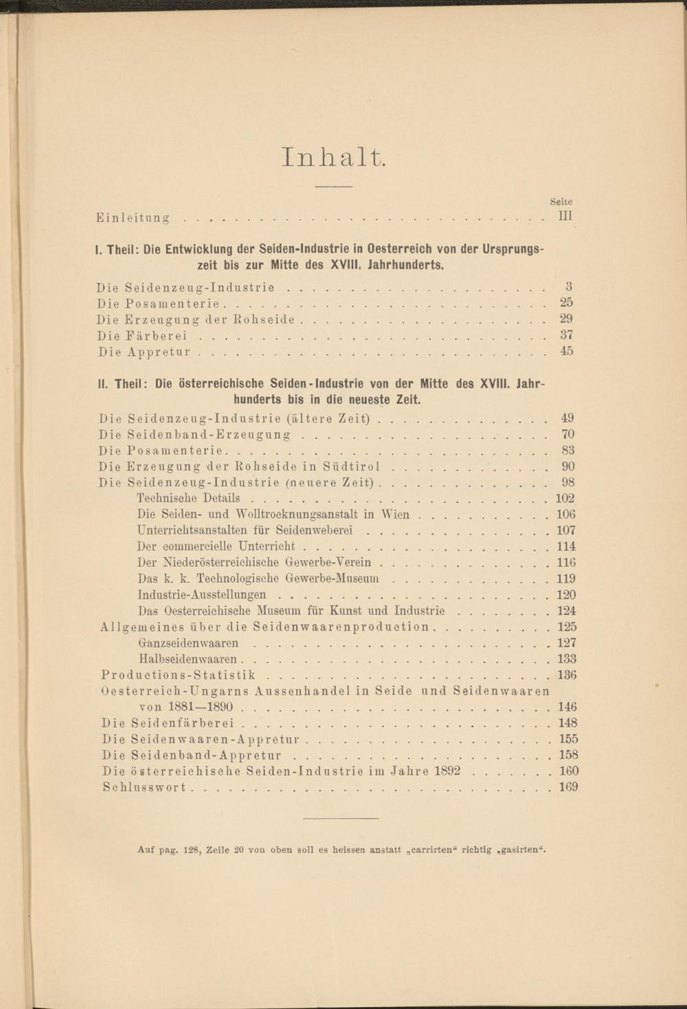 Auf pag. 128, Zeile 20 von oben soll es heissen anstatt „carrirten -1 richtig „gasirten“.