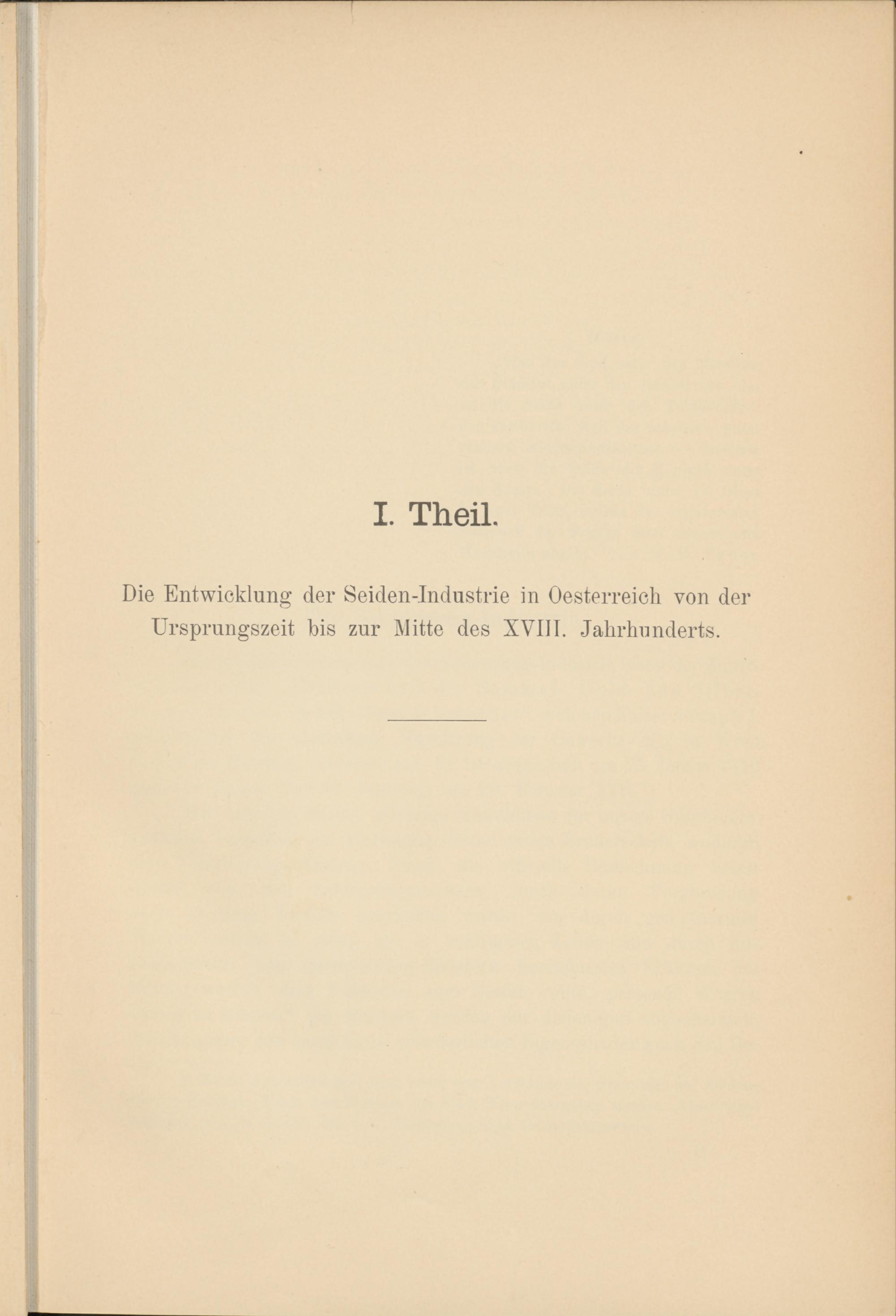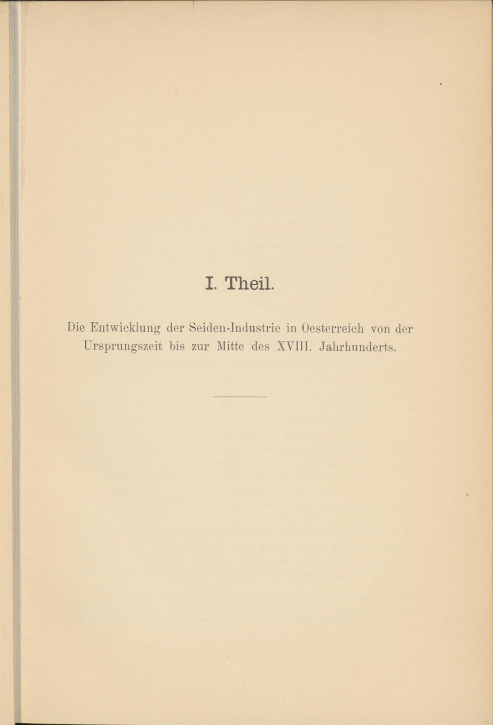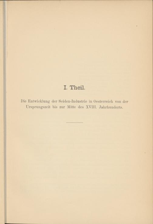 I. Theil. Die Entwicklung der Seiden-Industrie in Oesterreich von Ursprungszeit bis zur Mitte des XVIII. Jahrhunderts