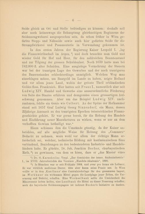 x ) Dr. O. Karsehulin: Vergl. „Zur Geschichte der österr. Seidenindustrie“ I., im XVIII. Jahresberichte des Vereines „Handels-Akademie“, 1890.