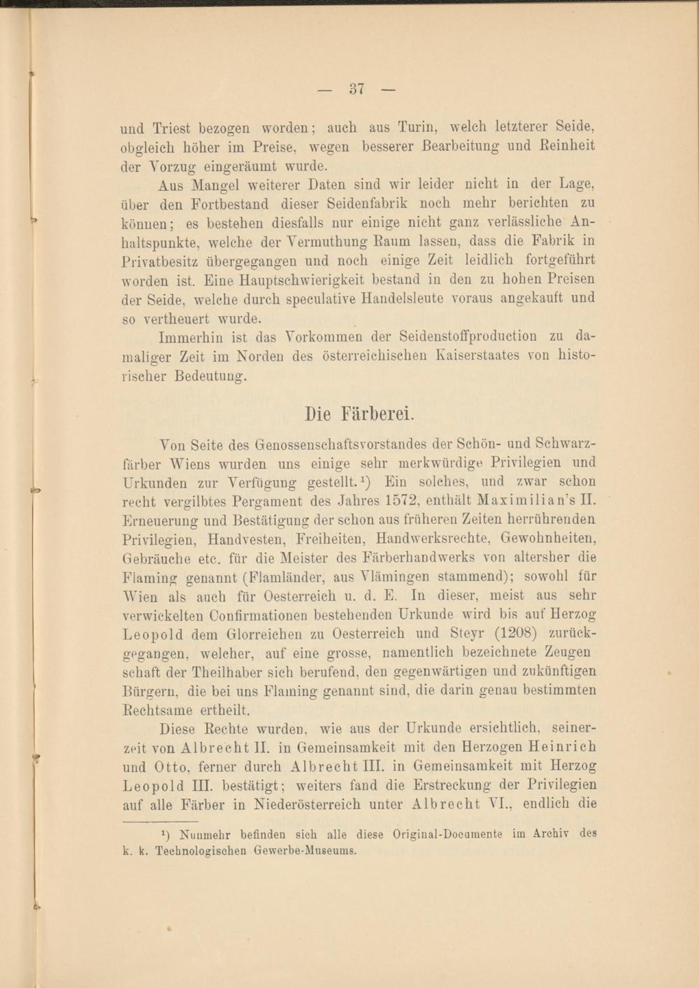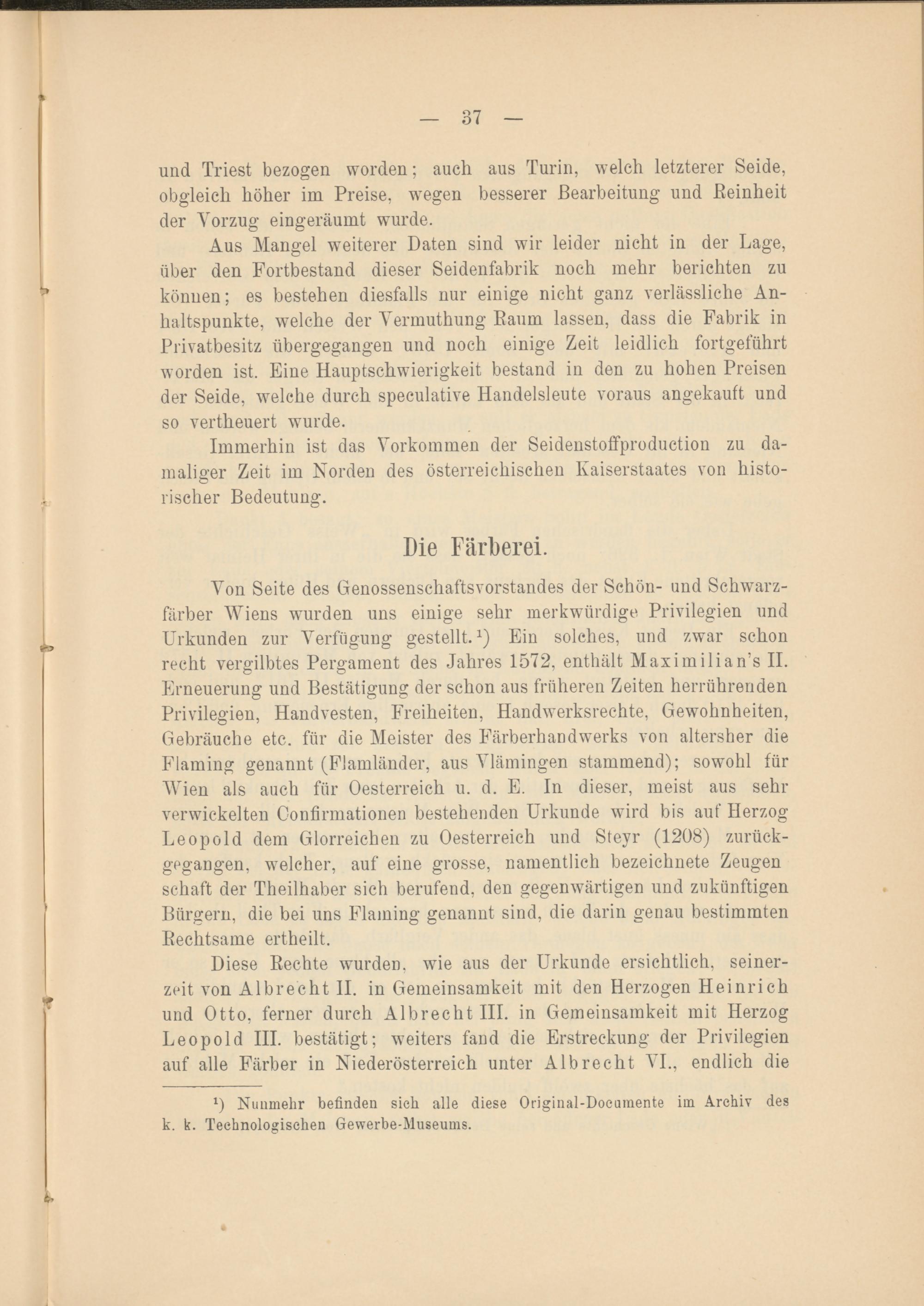 0 Nunmehr befinden sich alle diese Original-Doeumente im Archiv des k. k. Technologischen Gewerbe-Museums.
