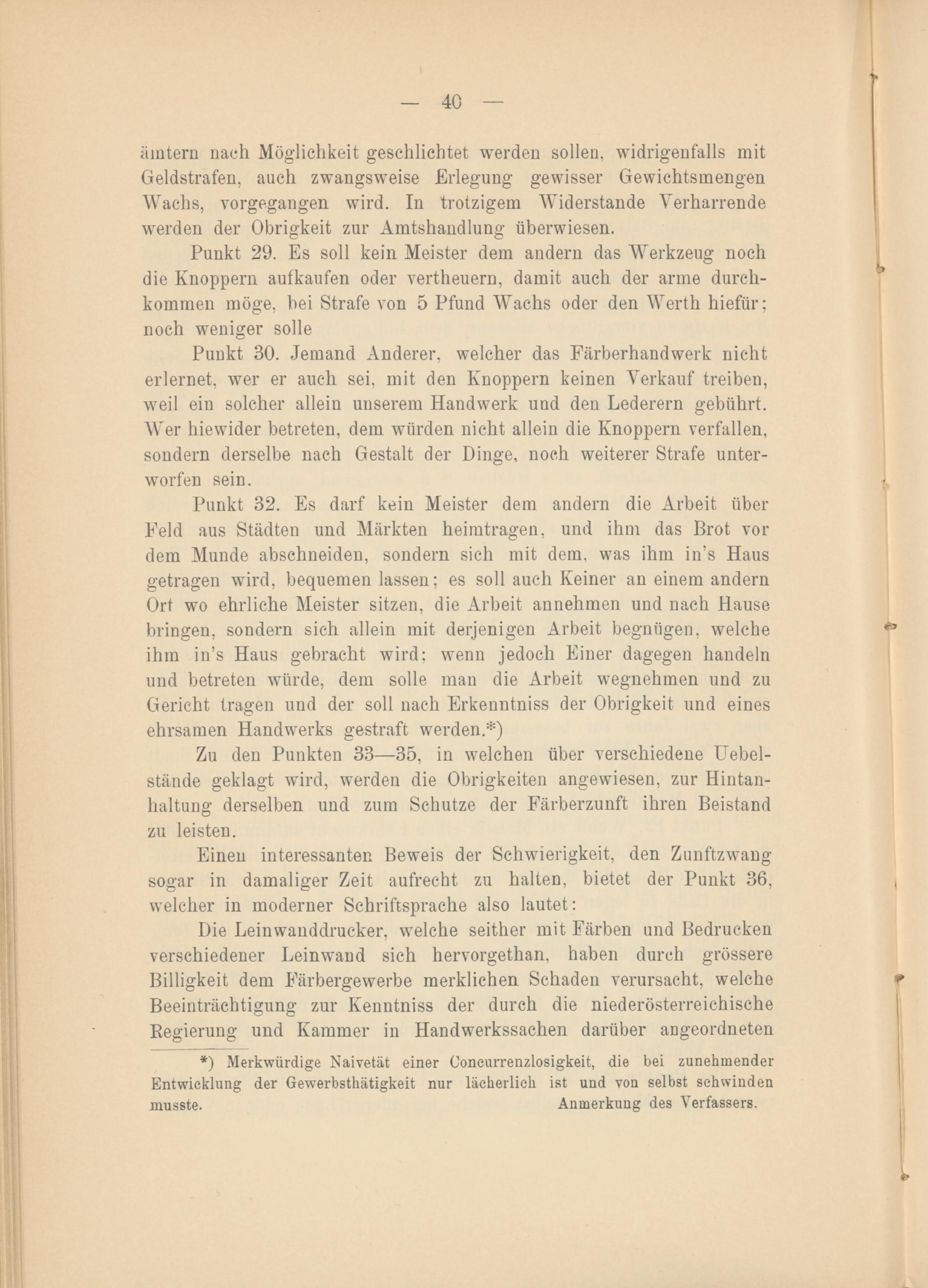 Zu den Punkten 33—35, in welchen über verschiedene Uebel- stände geklagt wird, werden die Obrigkeiten angewiesen, zur Hintanhaltung derselben und zum Schutze der Färberzunft ihren Beistand zu leisten.