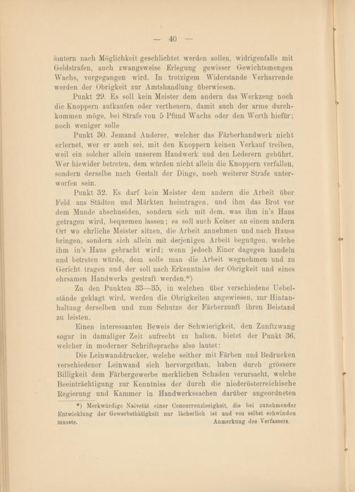 Einen interessanten Beweis der Schwierigkeit, den Zunftzwang sogar in damaliger Zeit aufrecht zu halten, bietet der Punkt 36, welcher in moderner Schriftsprache also lautet: