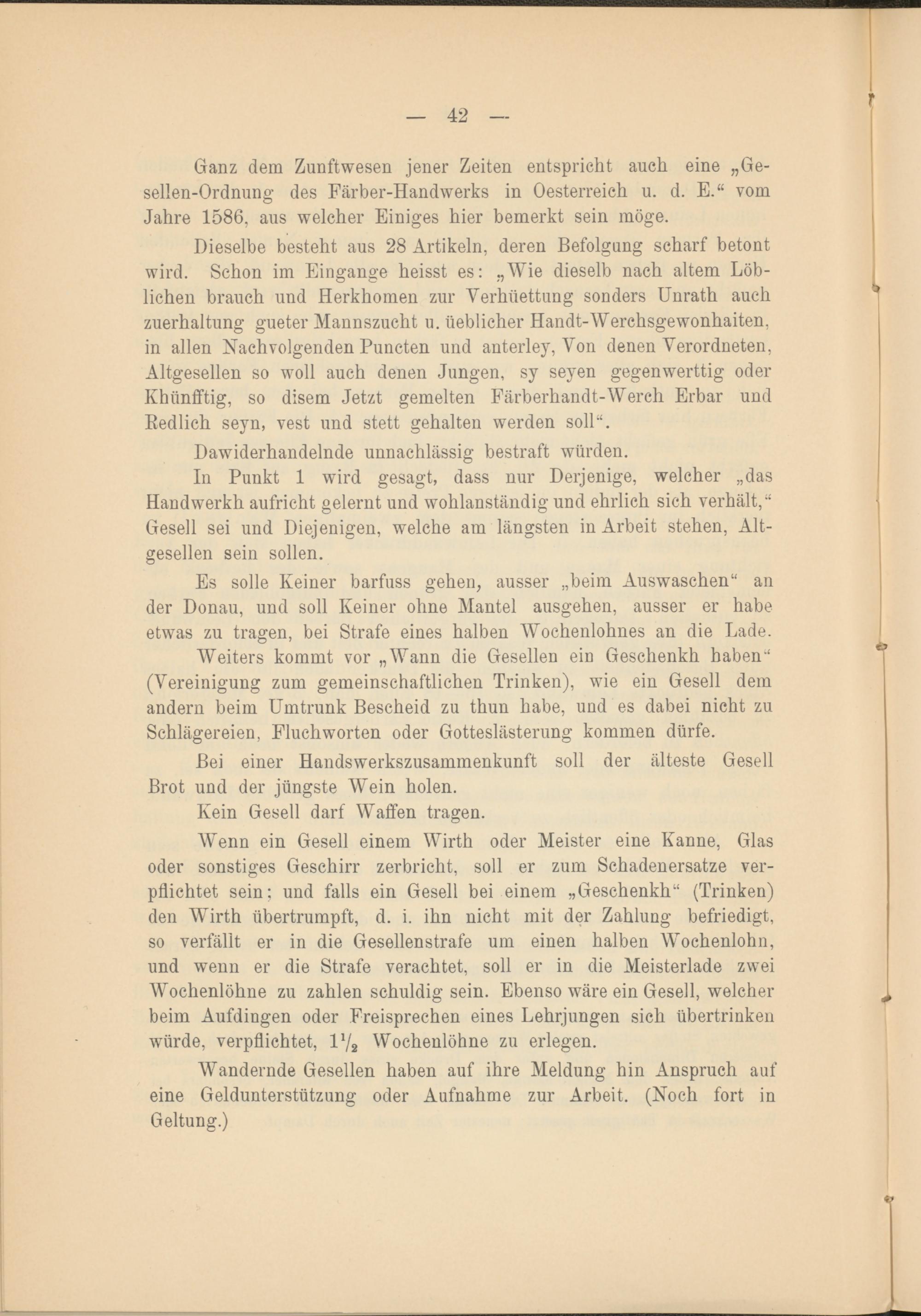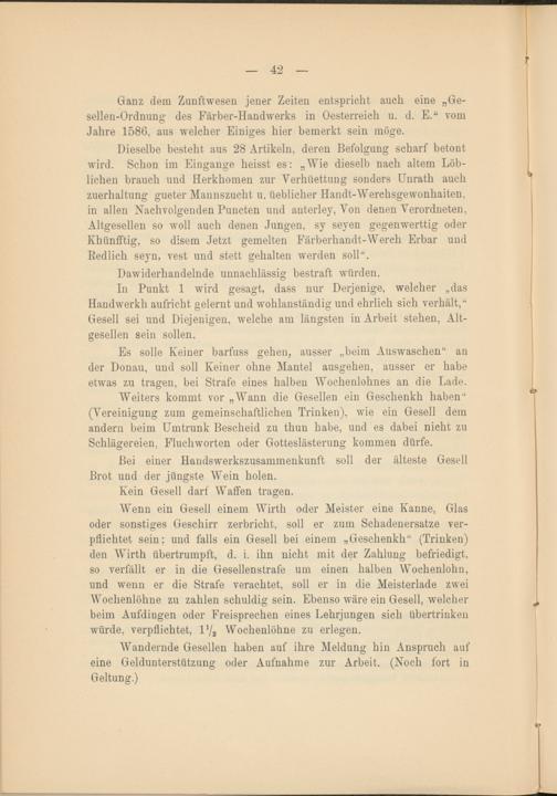 Ganz dem Zunftwesen jener Zeiten entspricht auch eine „Ge- sellen-Ordnung des Färber-Handwerks in Oesterreich u. d. E.“ vom Jahre 1586, aus welcher Einiges hier bemerkt sein möge.
