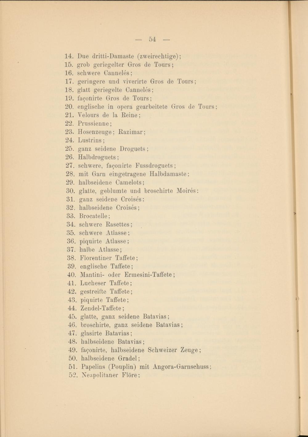 14. Due dritti-Damaste (zweirechtige) ;
