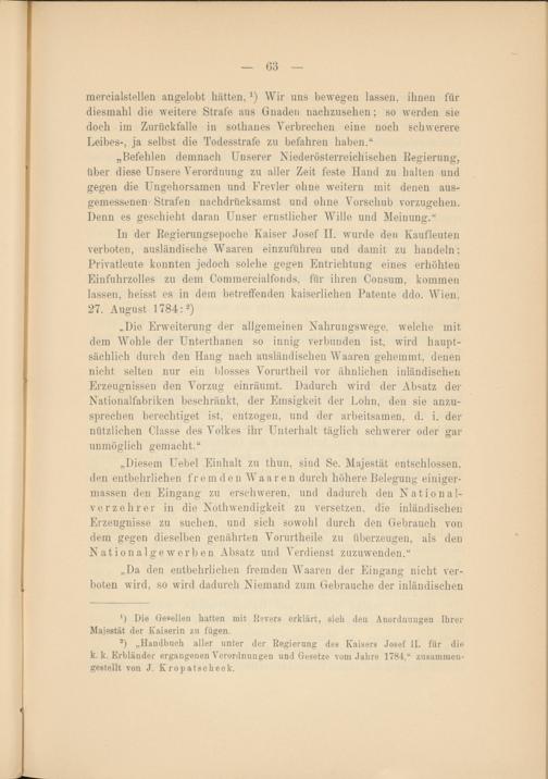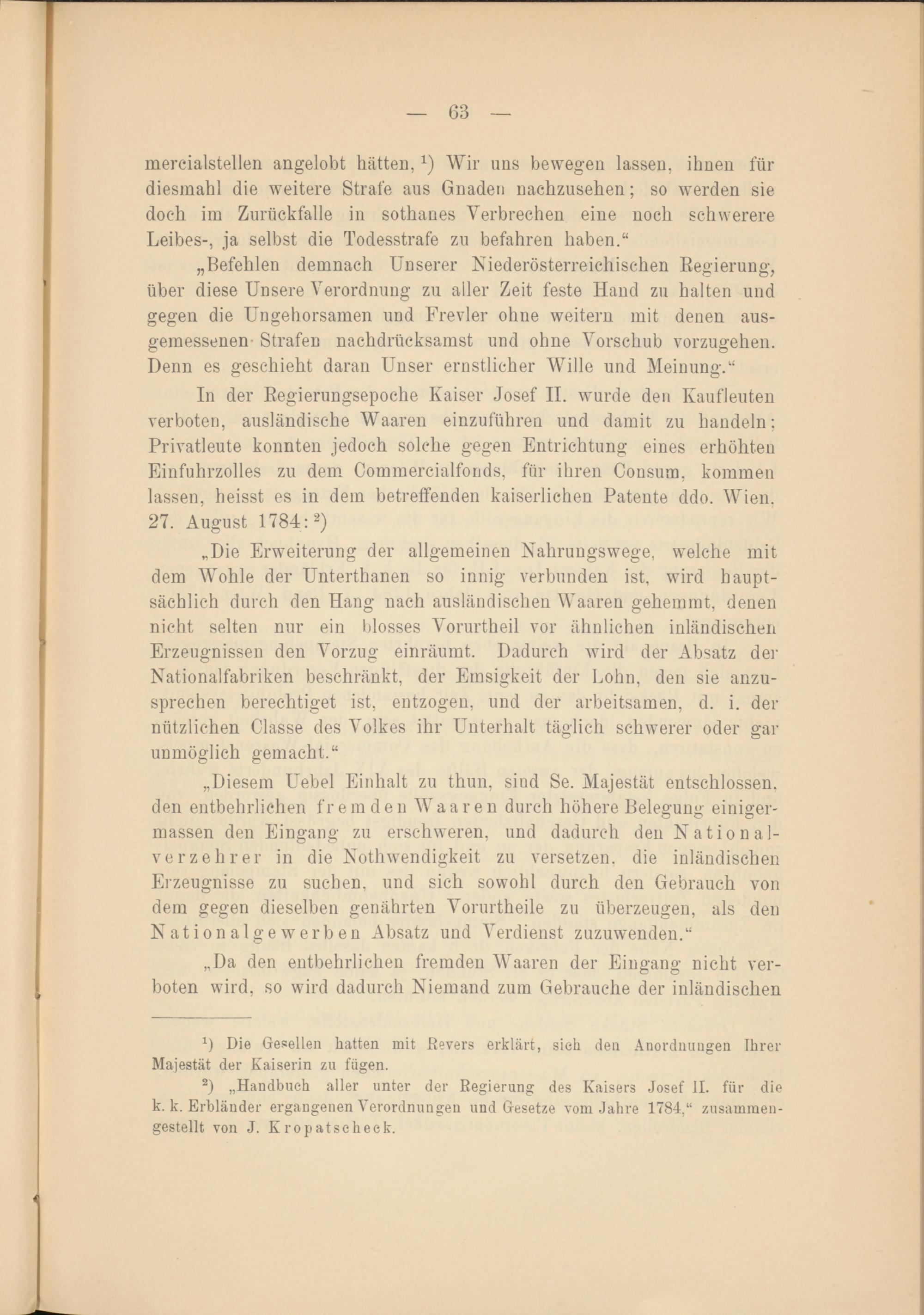 2 ) „Handbuch aller unter der Regierung des Kaisers Josef II. für die k. k. Erbländer ergangenen Verordnungen und Gesetze vom Jahre 1784,“ zusammengestellt von J. Kropatscheek.