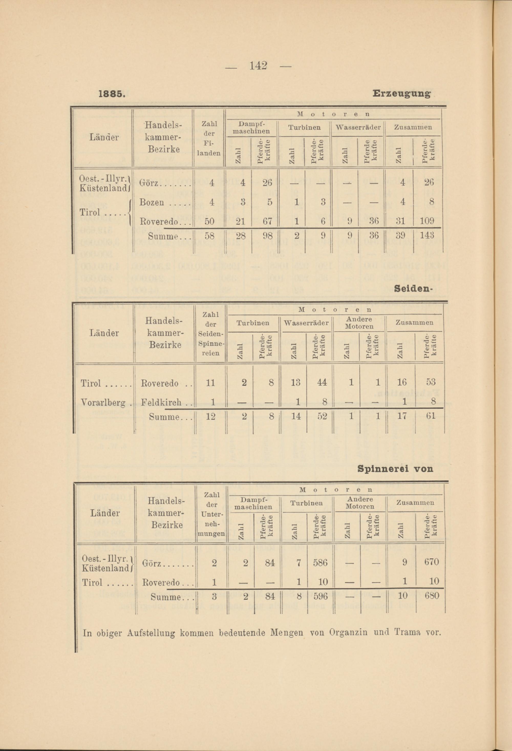 In obiger Aufstellung kommen bedeutende Mengen von Organzin und Trama vor.