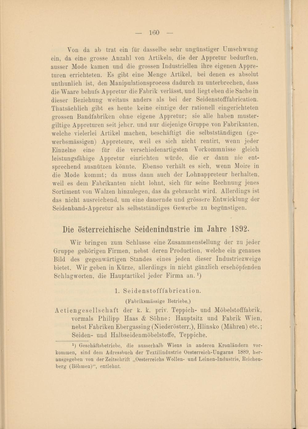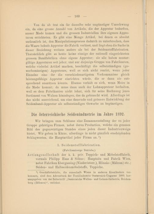 x ) Geschäftsbetriebe, die ausserhalb Wiens in anderen Kronländern Vorkommen, sind dem Adressbuch der Textilindustrie Oesterreich-Ungarns 1889, herausgegeben von der Zeitschrift „Oesterreichs Wollen- und Leinen-Industrie, Beicheu- berg (Böhmen)“, entlehnt.