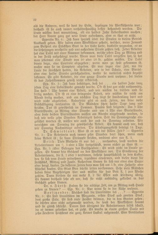 Dr. v. F ü rth: Haben sie die nöthige Zeit, um zu Mittag nach Hause gehen zu können? — Exp. Nr. 3: Nur wenn sie in der Nähe wohnen.