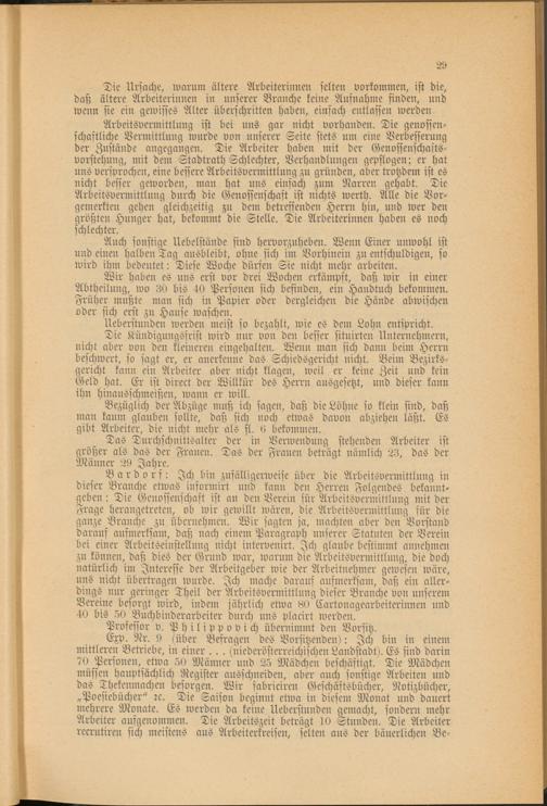Auch sonstige Uebelstände sind hervorzuheben. Wenn Einer unwohl ist und einen halben Tag ausbleibt, ohne sich im Vorhinein zu entschuldigen, so wird ihm bedeutet: Diese Woche dürfen Sie nicht mehr arbeiten.
