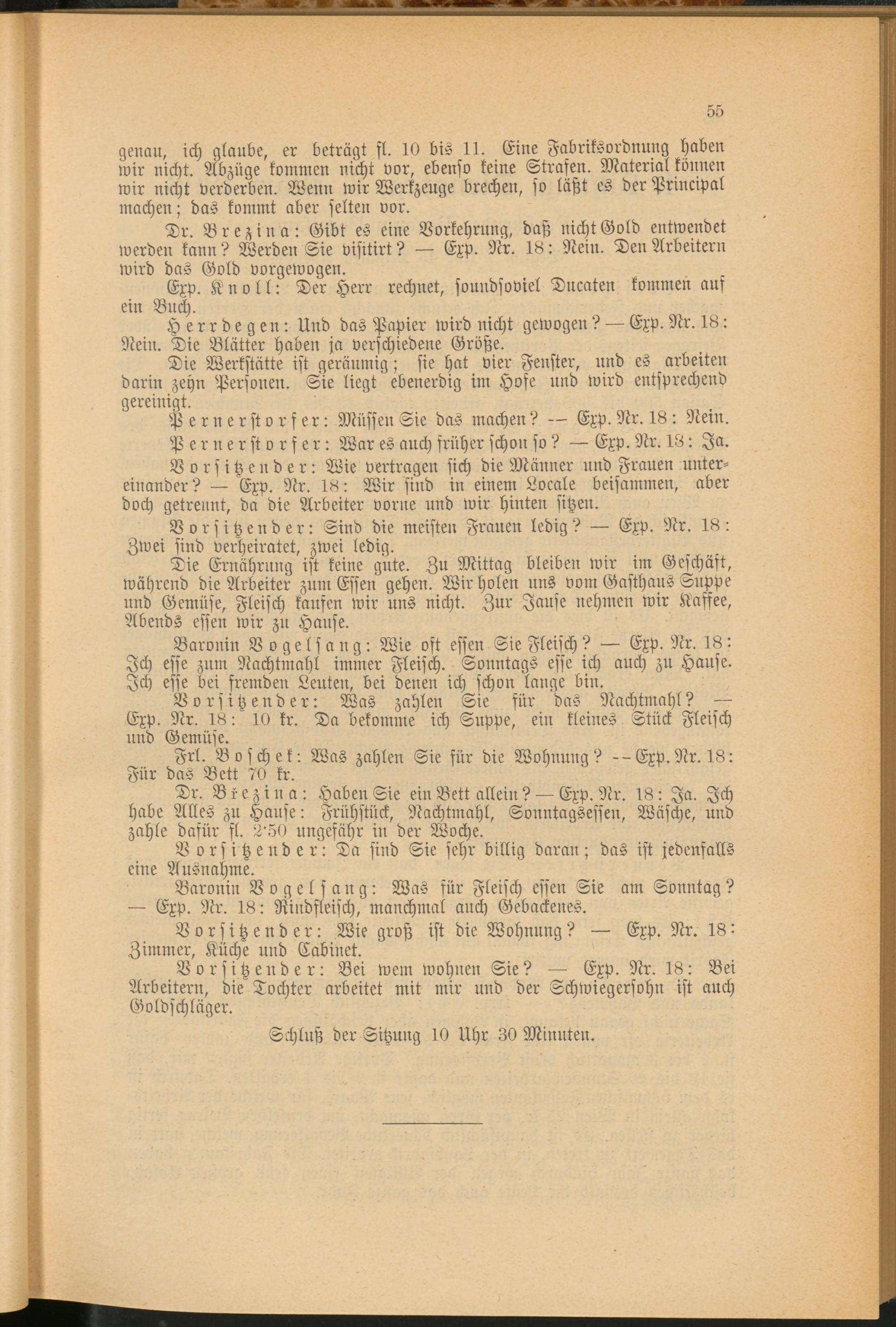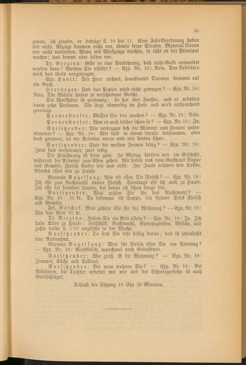 Dr. Brezina: Gibt es eine Vorkehrung, daß nicht Gold entwendet werden kann? Werden Sie visitirt ? Exp. Nr. 18: Nein. Den Arbeitern wird das Gold vorgewogen.