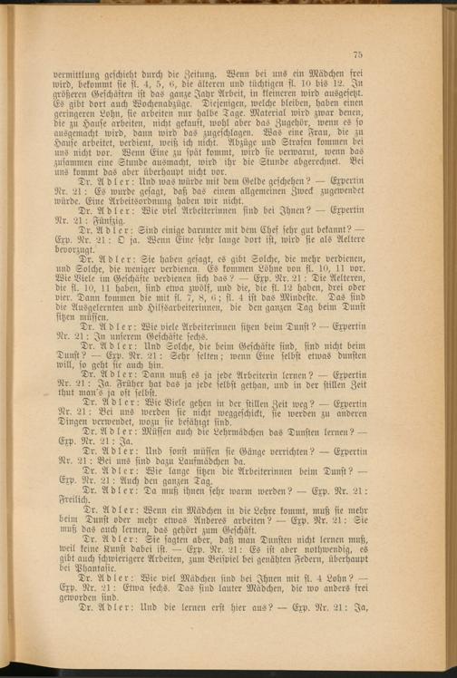 Dr. Adler: Wie viele Arbeiterinnen sitzen beim Dunst? — Expertin Nr. 21: In unserem Geschäfte sechs.
