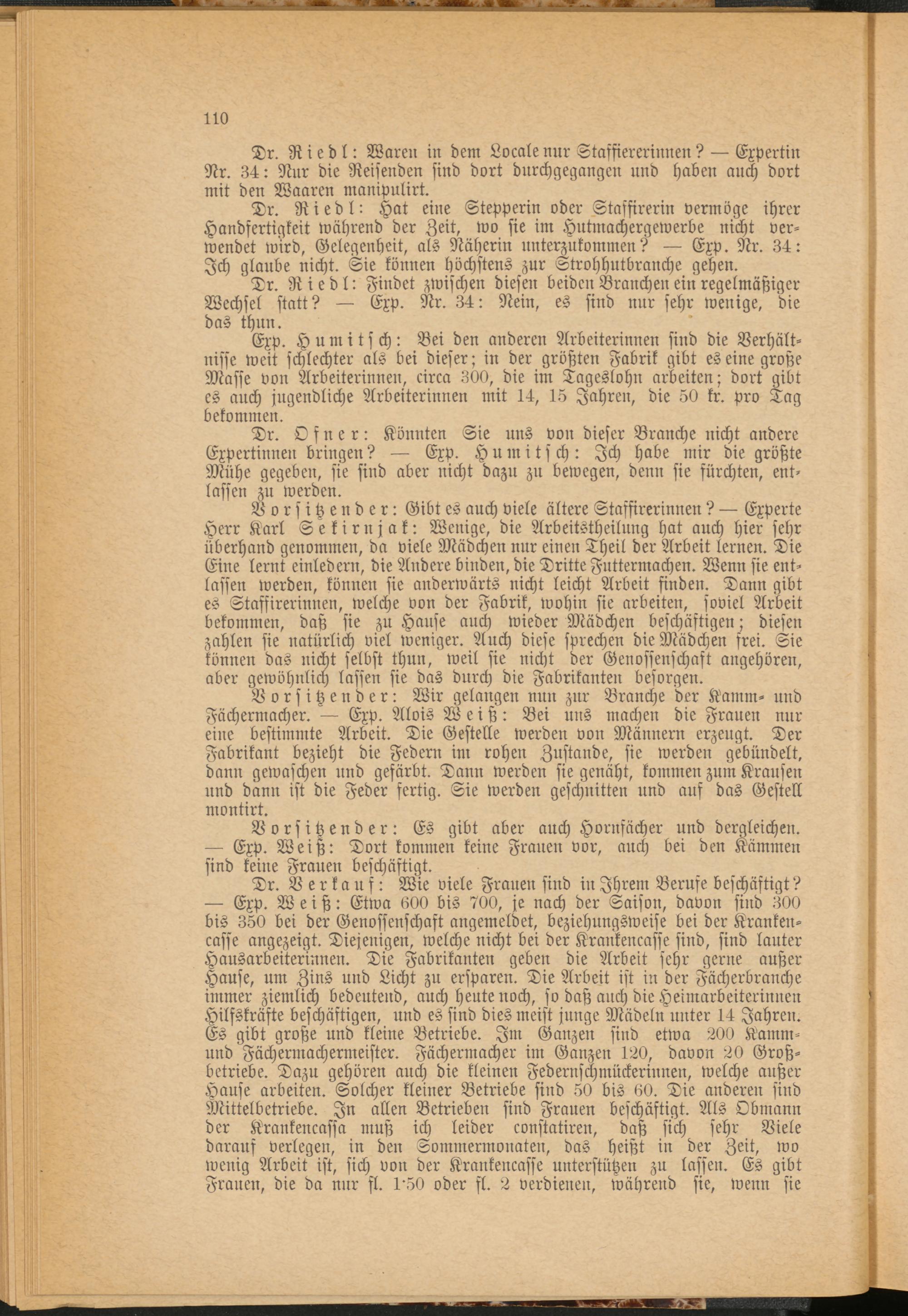 Dr. Ofner: Könnten Sie uns von dieser Branche nicht andere Expertinnen bringen? Exp. Humitsch: Ich habe mir die größte Mühe gegeben, sie sind aber nicht dazu zu bewegen, denn sie fürchten, ent­lassen zu werden.