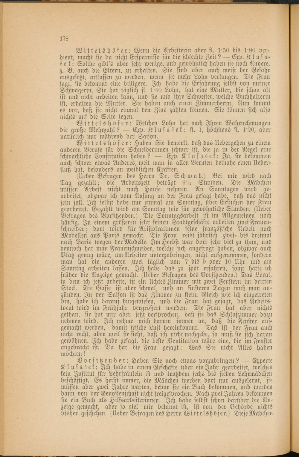 Wittelshöfer: Welchen Lohn hat nach Ihren Wahrnehmungen die große Mehrzahl? — Exp. Klusüöek: fl. 1, höchstens fl. 1'20, übernatürlich nur während der Saison.