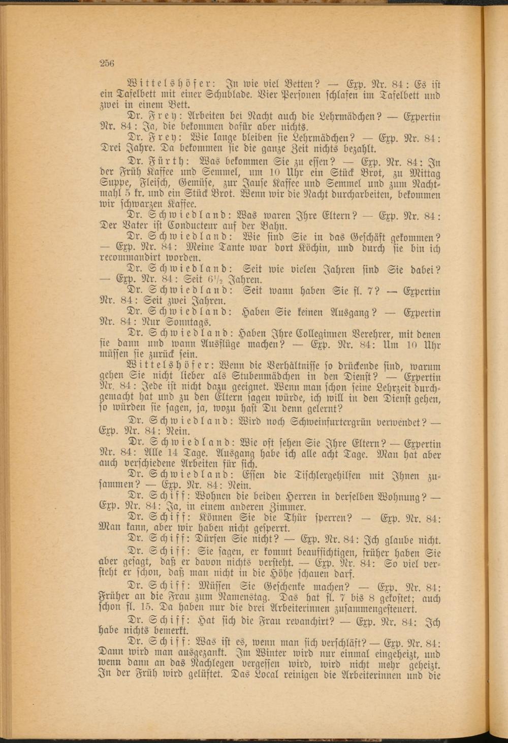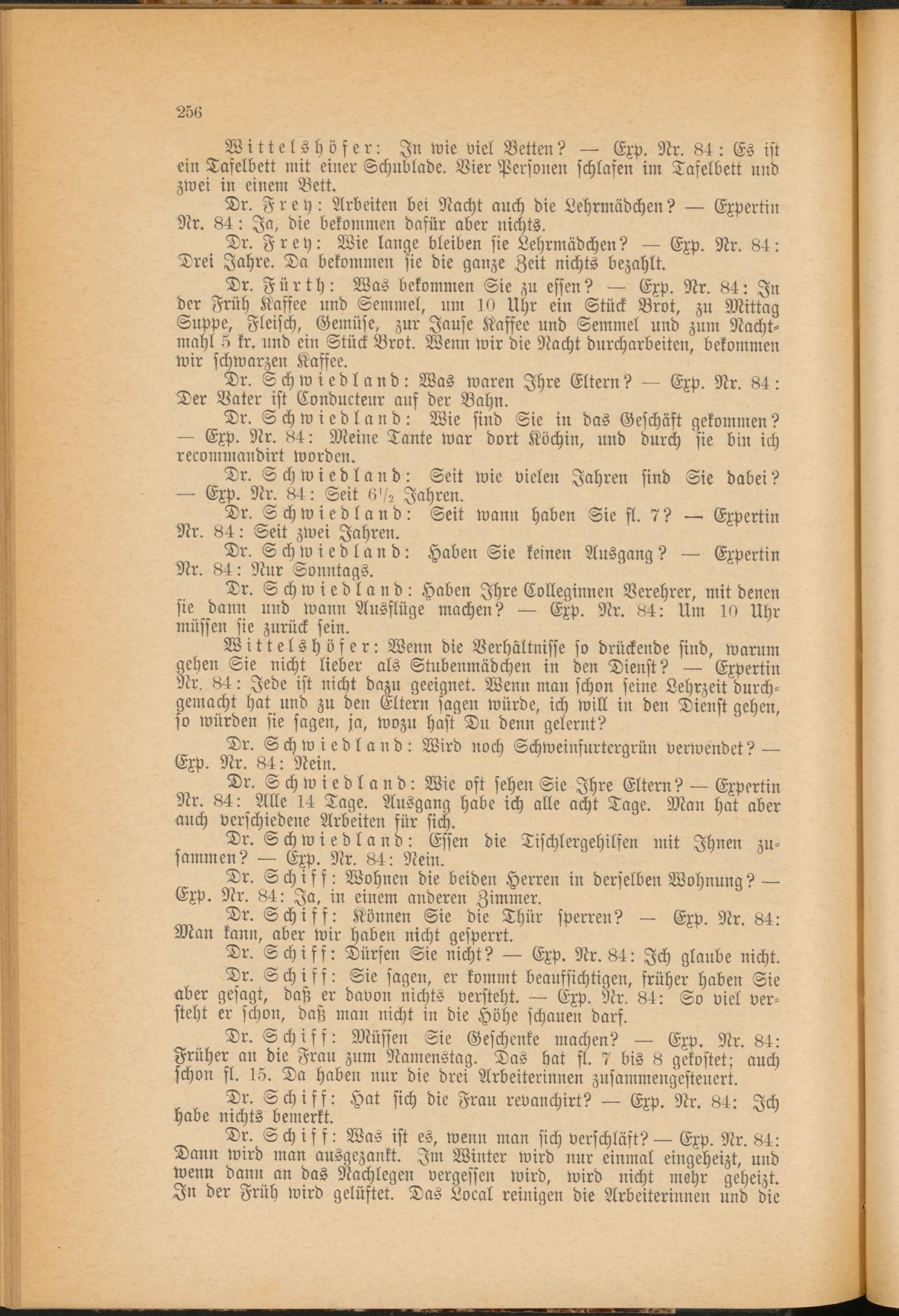 Dr. Schwiedland: Seit wann haben Sie fl. 7? — Expertin Nr. 84: Seit zwei Jahren.