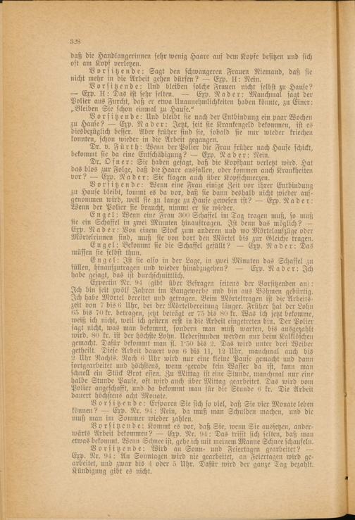 Dr. v. Fürth : Wenn der Polier die Frau früher nach Hause schickt, bekommt sie da eine Entschädigung? — Exp. Nader: Nein.