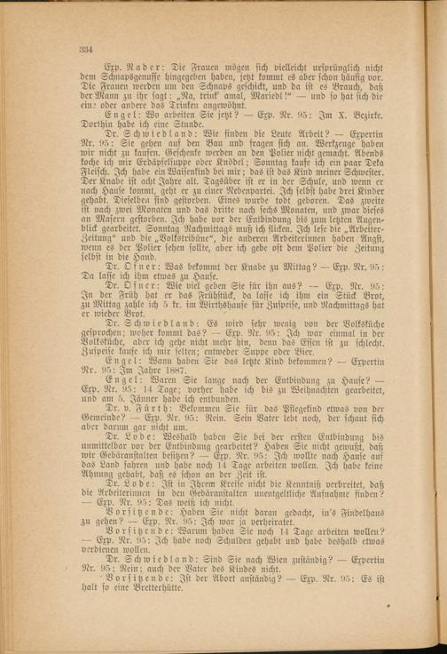 Dr. Lode: Weshalb haben Sie bei der ersten Entbindung bis unmittelbar vor der Entbindung gearbeitet? Haben Sie nicht gewußt, daß wir Gebäranstalten besitzen? Exp. Nr. 95: Ich wollte nach Hause aus das Land fahren und habe noch 14 Tage arbeiten wollen. Ich habe keine Ahnung gehabt, daß es schon an der Zeit ist.