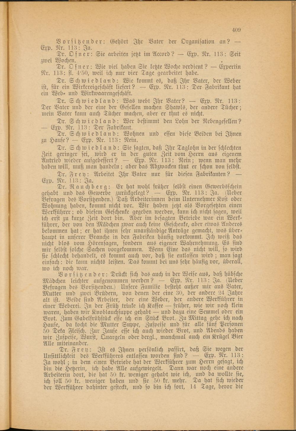 Dr. Ofner: Wie viel haben Sie letzte Woche verdient? — Expertin Nr. 113: fl. 4'50, weil ich nnr vier Tage gearbeitet habe.