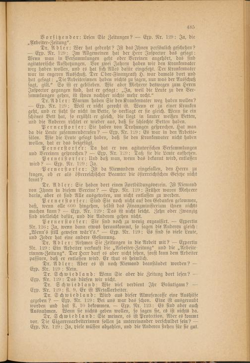 Vorsitzender: Lesen Sie Zeitungen? — Exp. Nr. 129: Ja, die „Arbeiter-Zeitung".