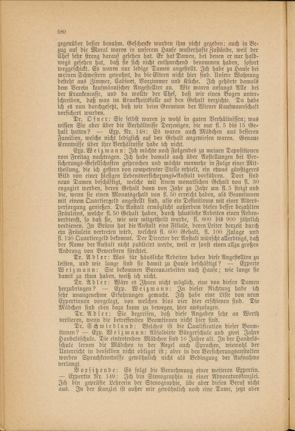 Dr. Ofner: Sie selbst waren ja wohl in guten Verhältnissen; was wissen Sie aber über die Verhältnisse Derjenigen, die nur st. 5 bis 15 Ge­halt hatten? Exp. Nr. 148: Es waren auch Mädchen aus besseren Familien, welche nicht lediglich auf den Gehalt angewiesen waren. Genaue Kenntnisse über ihre Verhältnisse habe ich nicht.