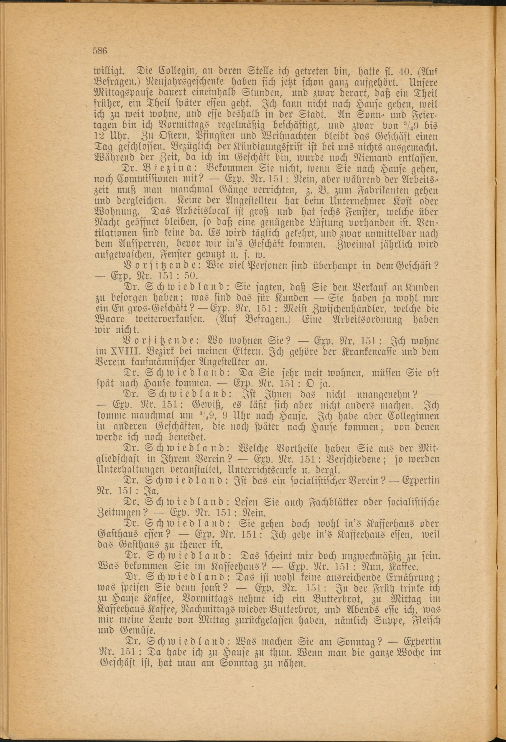 — Exp. Nr. 151: Gewiß, es läßt sich aber nicht anders machen. Ich komme manchmal um ^O, 9 Uhr nach Hause. Ich habe aber Colleginnen in anderen Geschäften, die noch später nach Hause kommen; von denen werde ich noch beneidet.